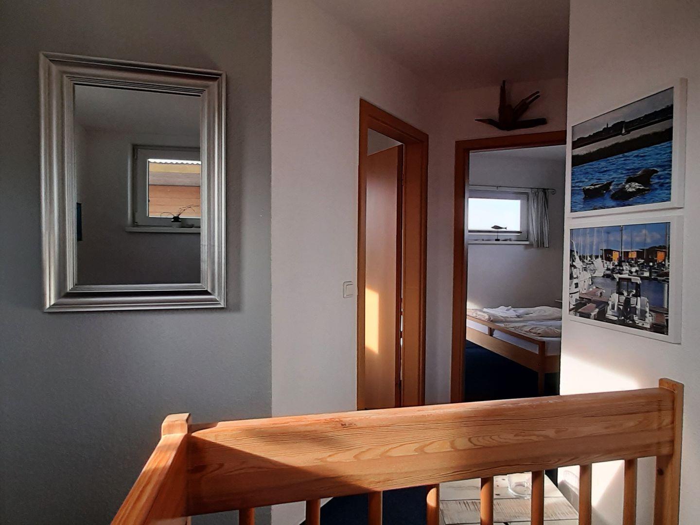 Im 2. Deck finden Sie 2 Schlafzimmer mit Doppelbetten und 1 Zimmer mit einer bequemen Schlafcouch. Dieses Zimmer kann wahlweise auch als Lese- oder Spielzimmer genutzt werden. Von 2 Zimmern in der oberen Etage können Sie direkt auf den Balkon gehen, hier finden Sie 2 Relax-Liegen und einen wunderbaren Blick über den Bodden.