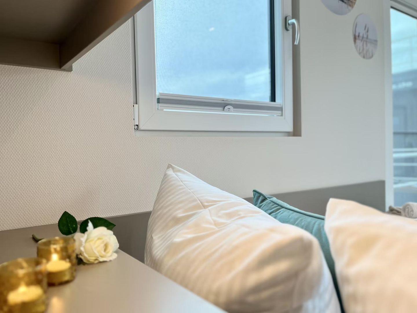 Auf 44 m² stehen Ihnen insgesamt 3 Zimmer zur Verfügung, darunter 2 Schlafzimmer sowie ein Wohnzimmer mit Sofaecke und Essbereich. Insgesamt sind 4 Schlafmöglichkeiten vorhanden. Für angenehmes Raumklima sorgen Heizung und Klimaanlage; zusätzlich ist ein Kamin-/Ofen vorhanden. Sichtschutz an allen Fenstern sowie Fliegengitter erhöhen den Komfort, während WLAN, TV, Radio und eine Garderobe die Ausstattung abrunden.