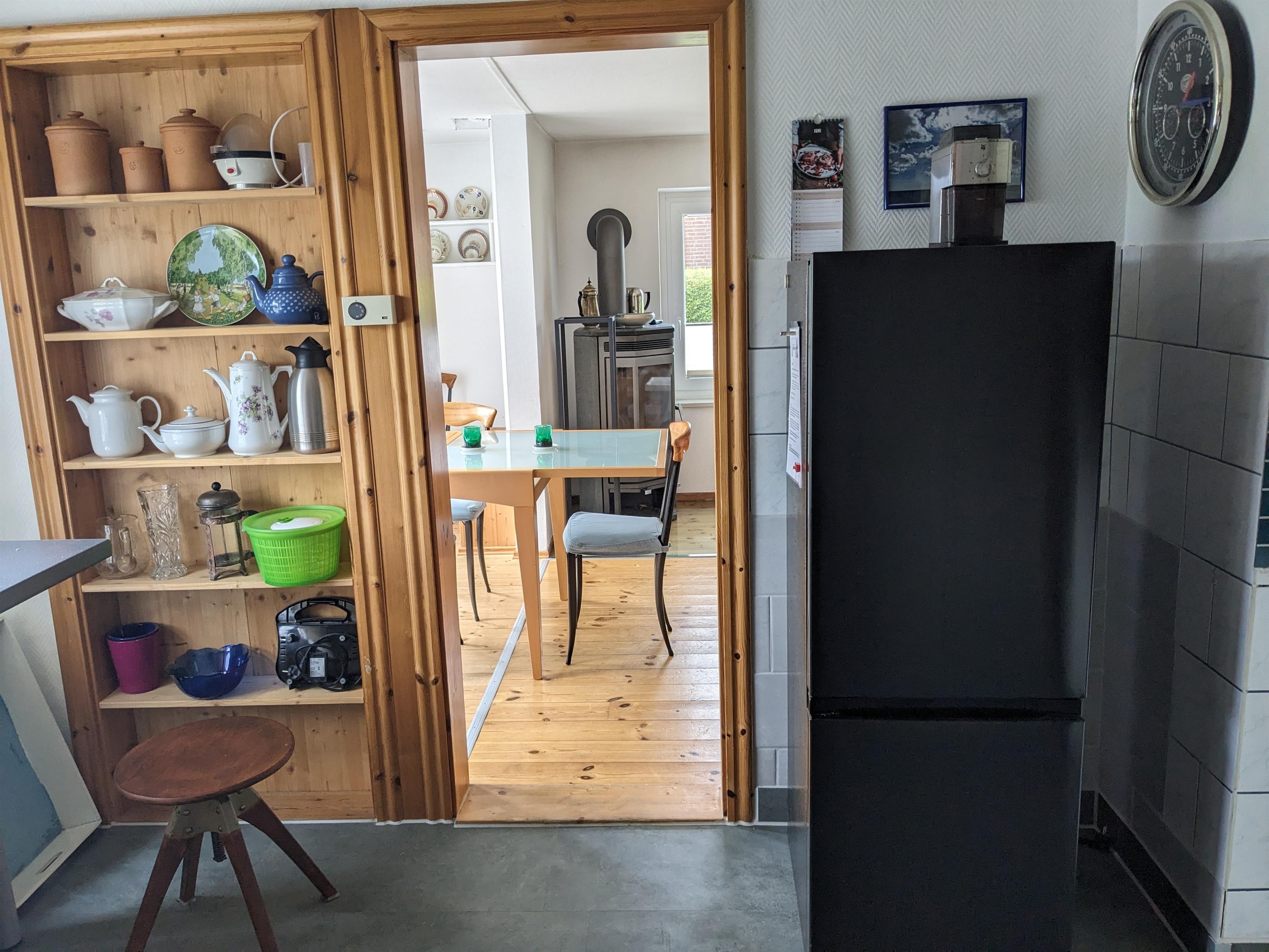 Eine vollständig eingerichtete Küche (Backofen, Herd mit Ceranfeld und 4 Kochfeldern, Geschirrspülmaschine, Wasserkocher, Toaster) erlaubt die Zubereitung leckerer Mahlzeiten nach einem langen Tag am Strand. Mixer und Pürierstab gehören auch zum Inventar. Für die ganz Kleinen steht ein Kinderhochstuhl bereit.