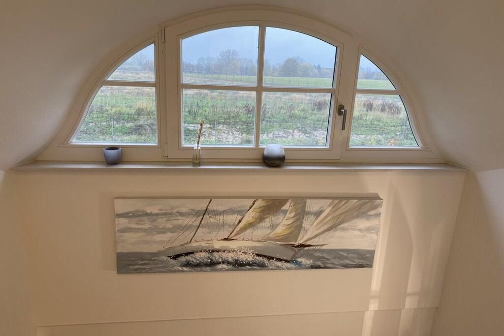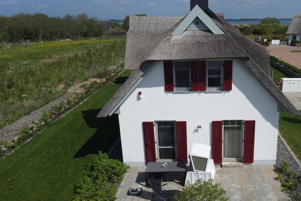 Schönes Reetdachhaus mit Wasserblick für 8 Personen mit Sauna , Kaminofen, moderne Einrichtung, 1 Sonnenterrasse und 150m Strandnähe
