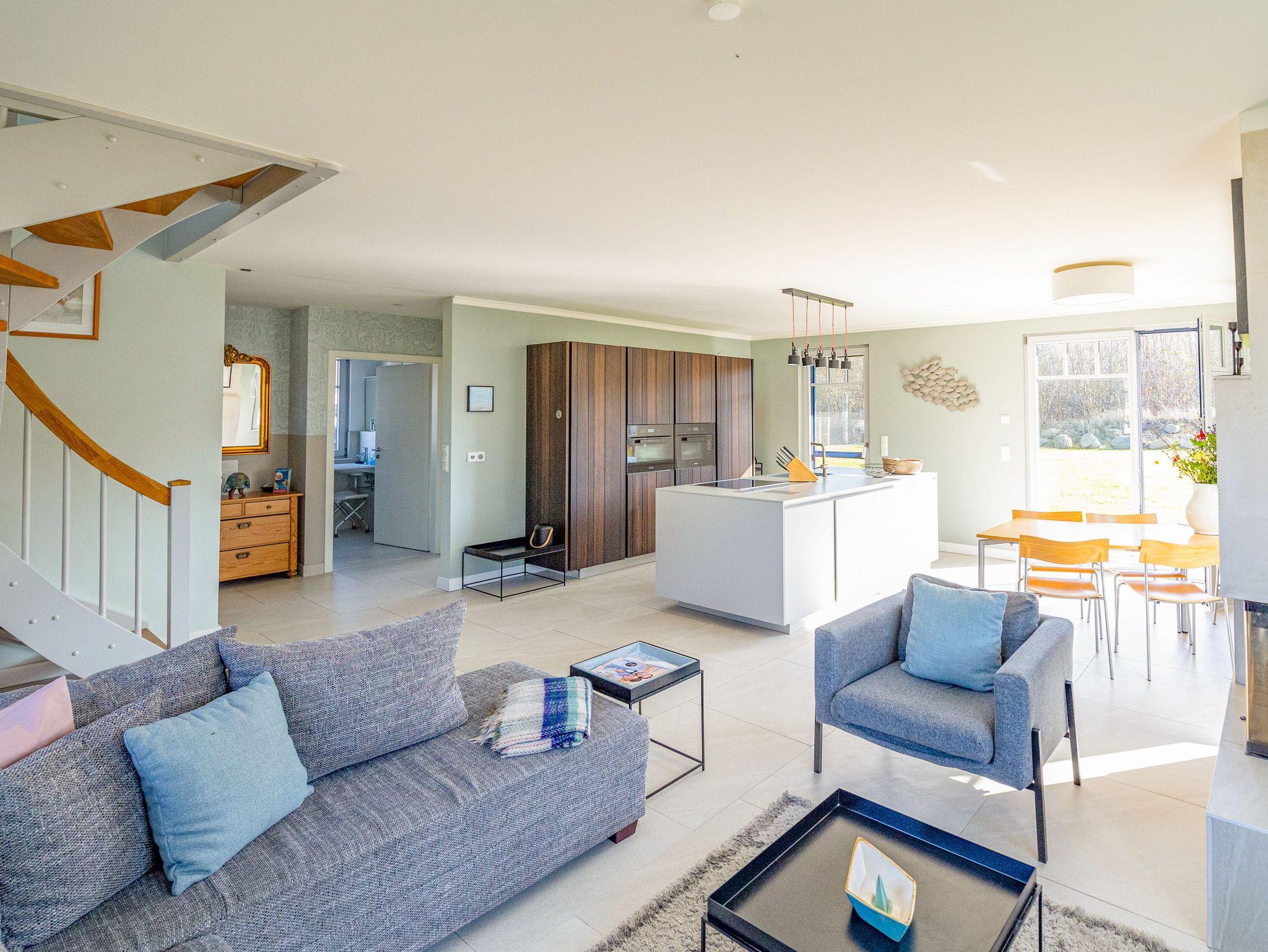 Das exklusive Reetdachhaus in Parow bietet auf 133 m² Platz für bis zu 8 Personen und kombiniert auf zwei Etagen stilvolles Ambiente mit modernem Komfort. In einer ruhigen, familienfreundlichen Ferienhaussiedlung direkt hinter dem Deich am Strelasund gelegen, bist du nur wenige Schritte vom Wasser entfernt. Es erwarten dich großzügige Wohnbereiche ? im Erdgeschoss ein Wohnzimmer mit offener Küche und Kamin sowie im Obergeschoss eine gemütliche Leseecke mit Schreibtisch, perfekt für entspannte Momente mit einem Buch oder zum Arbeiten. Die hochwertig ausgestattete Küche lässt keine Wünsche offen, sodass du hier kulinarische Highlights zaubern kannst. In den vier liebevoll eingerichteten Schlafzimmern ? zwei mit Doppelbetten und zwei mit Einzelbetten ? findest du komfortable Rückzugsorte. Zwei Badezimmer sorgen für zusätzlichen Komfort und in einem erwartet dich als besonderes Extra eine Sauna. Die Terrasse mit Garten lädt zu entspannten Stunden im Freien ein und zwei Parkplätze machen das Haus auch für größere Gruppen perfekt. Dieses Ferienhaus ist ein exklusiver Rückzugsort für alle, die das Besondere suchen und ideal für Familien, Freunde oder Paare, die einen erholsamen und stilvollen Urlaub in einer der schönsten Regionen des Nordens verbringen möchten.