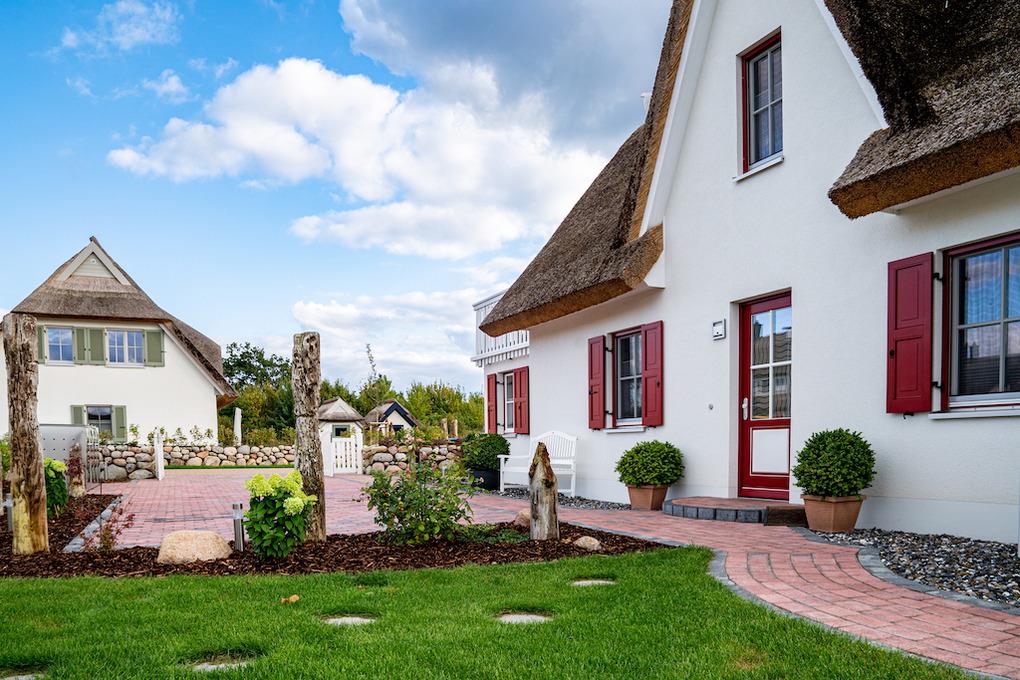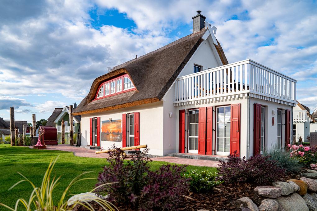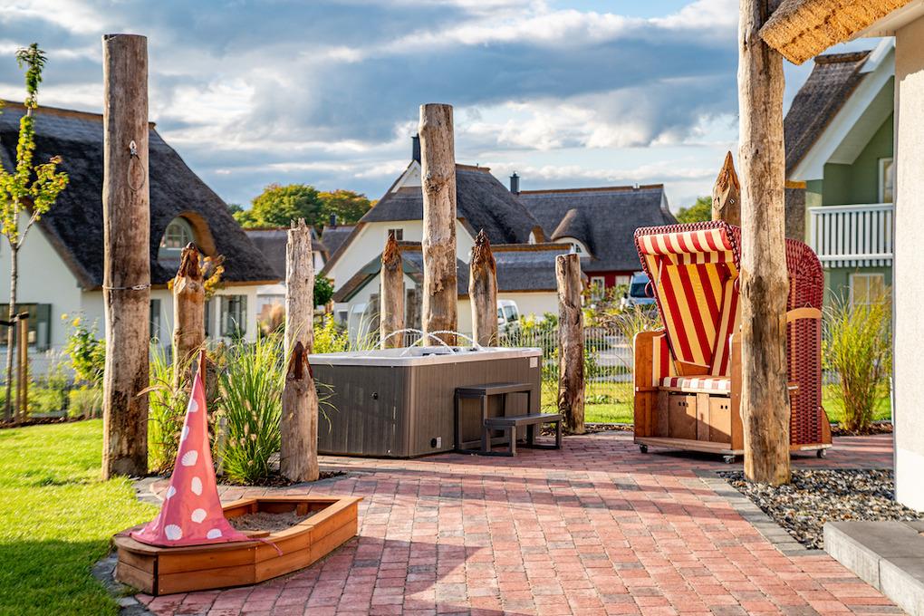 Reetdach-Ferienhaus, optional mit Außenwhirlpool, Sauna, Strandkorb, Kaminofen, Dachterrasse, Spielbereich für Kind und Hund, Ladestation für E-Autos