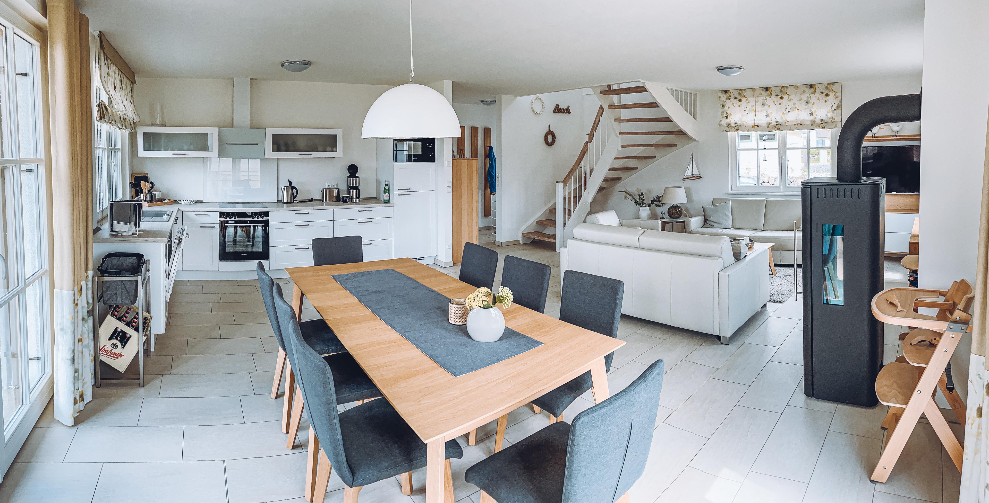Großzügiges schönes Reetdach-Ferienhaus "Auszeit" mit Sauna und Kaminofen, Erstbezug 08/2020. Nichtraucherhaus. Gehobene Ausstattung mit moderner, geschmackvoller Einrichtung. 4 Schlafzimmer für 8 Personen und Aufbettung für 2 Personen im Wohnraum, 2 Bäder. Kostenloser Internetzugang (W-Lan), Fußbodenheizung. Waschmaschine/Trockner. Terrasse mit Sitzmöbeln, 2 Strandkörbe, 3 Hängematten, Holzkohle-Grill, 2 Pkw-Stellplätze am Haus. Ein Haustier gestattet. Grundstück ist nicht eingezäunt.
