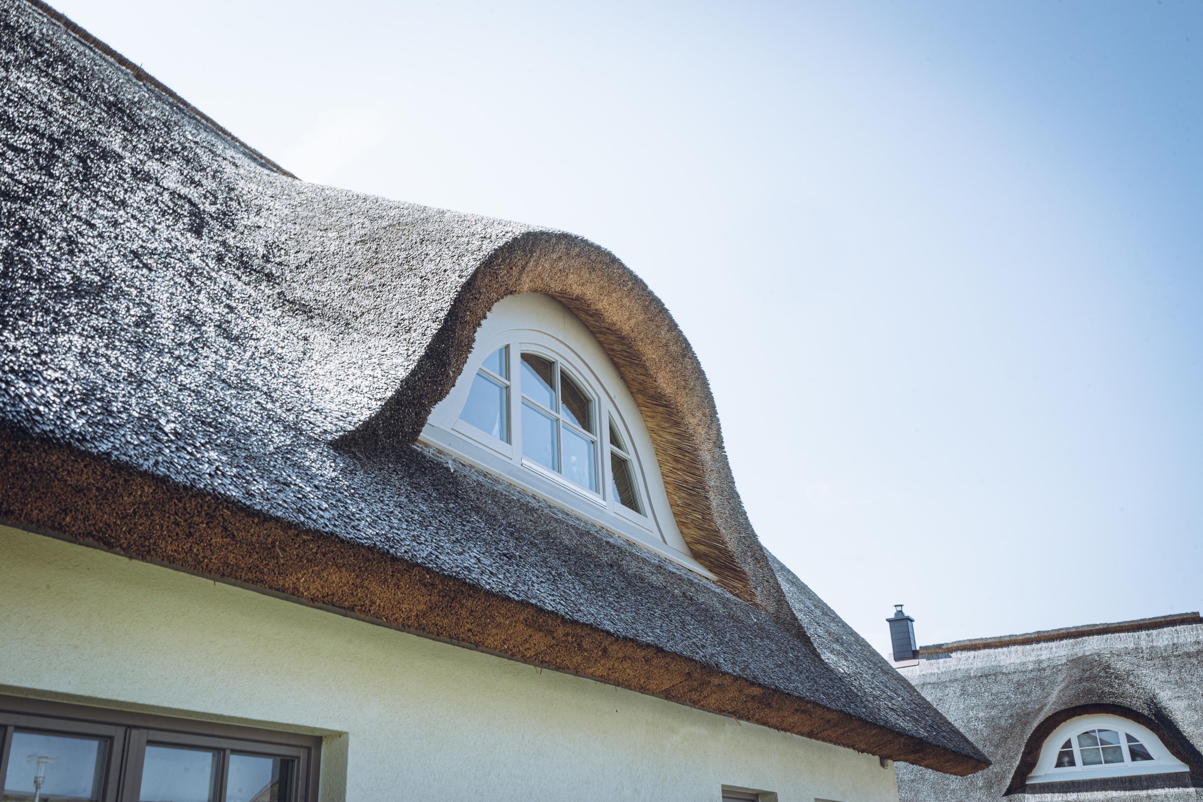 Reetdachhaus mit Sauna und Strandkorb am Meer