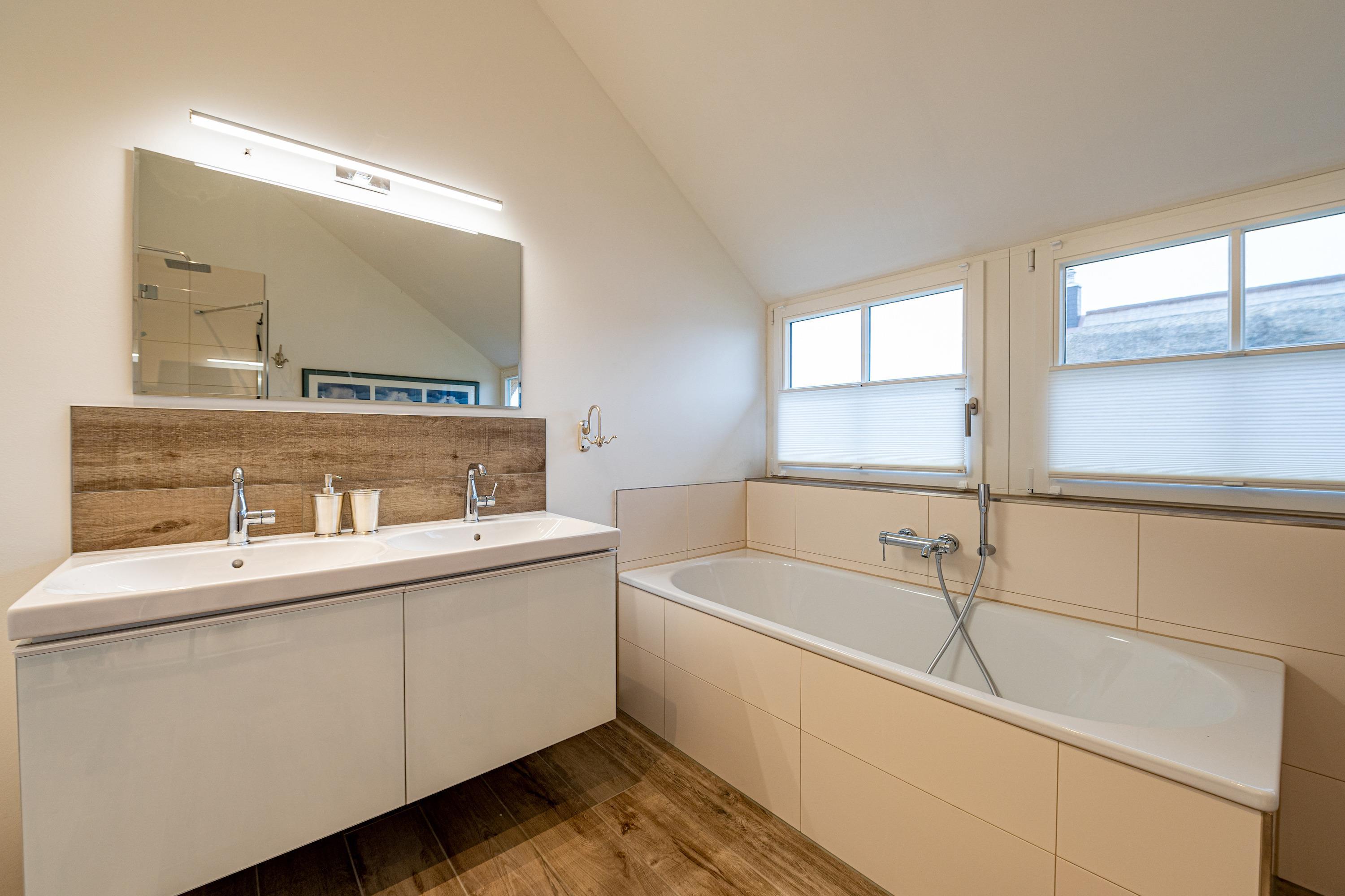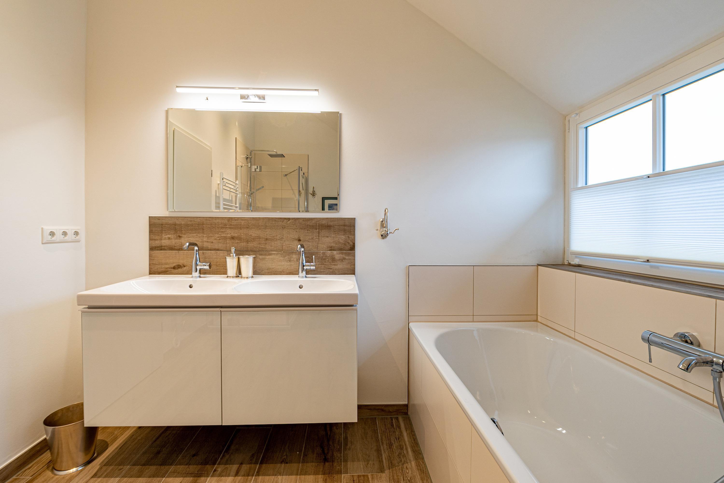 Die Fußbodenheizung und der Kamin sorgen zu jeder Jahreszeit für angenehmes Wohlfühlklima und die Außenterrassen, bestückt mit diversen Gartenmöbeln und einem Strandkorb, der Balkon sowie der große eingezäunte Garten laden zum Verweilen im Freien ein.