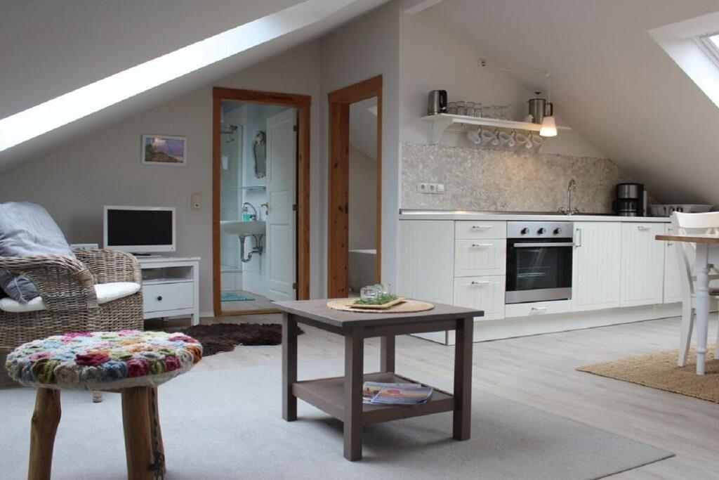 Charmante Dachwohnung auf einem Demeter-Bauernhof nahe der Ostsee mit Garten, Spielplatz und moderner Ausstattung.