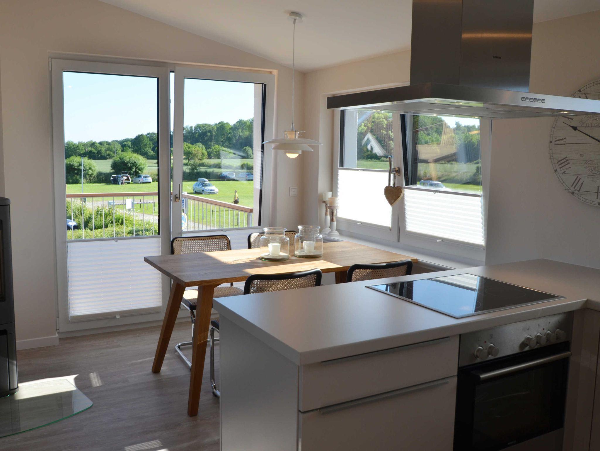 Der Wohnbereich ist lichtdurchflutet, der Blick auf die Ostsee immer wieder faszinierend. Die hochwertigen Möbel (wie Thonet-Stühle) und die Farbgestaltung in Beige und Braun machen die Ferienwohnung Ærø zu etwas ganz Besonderem.