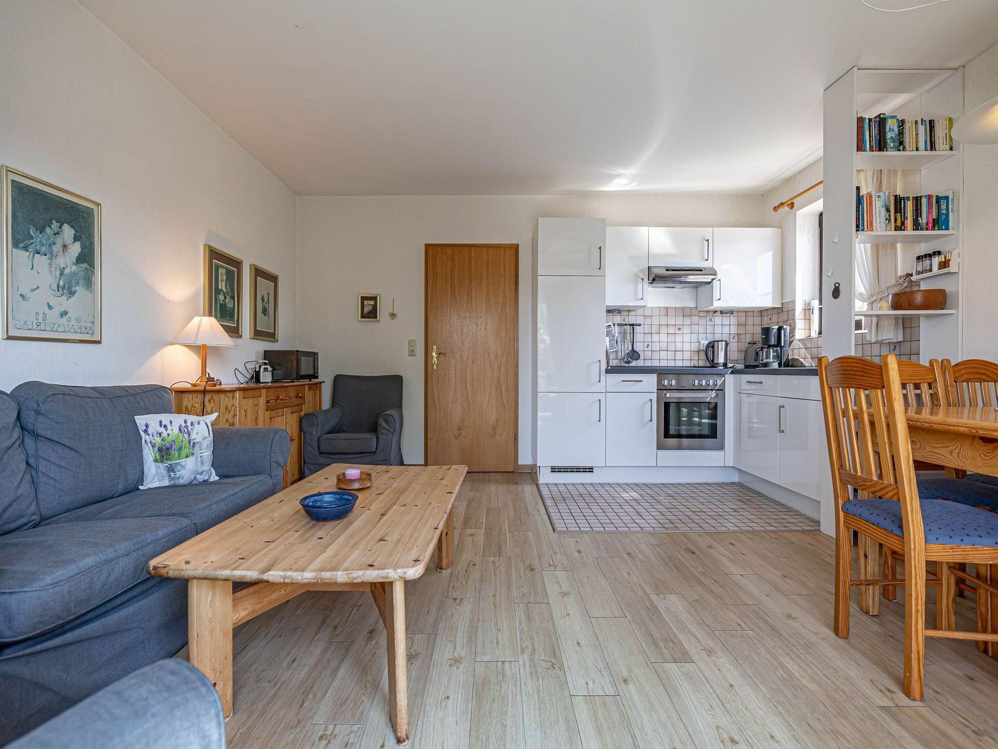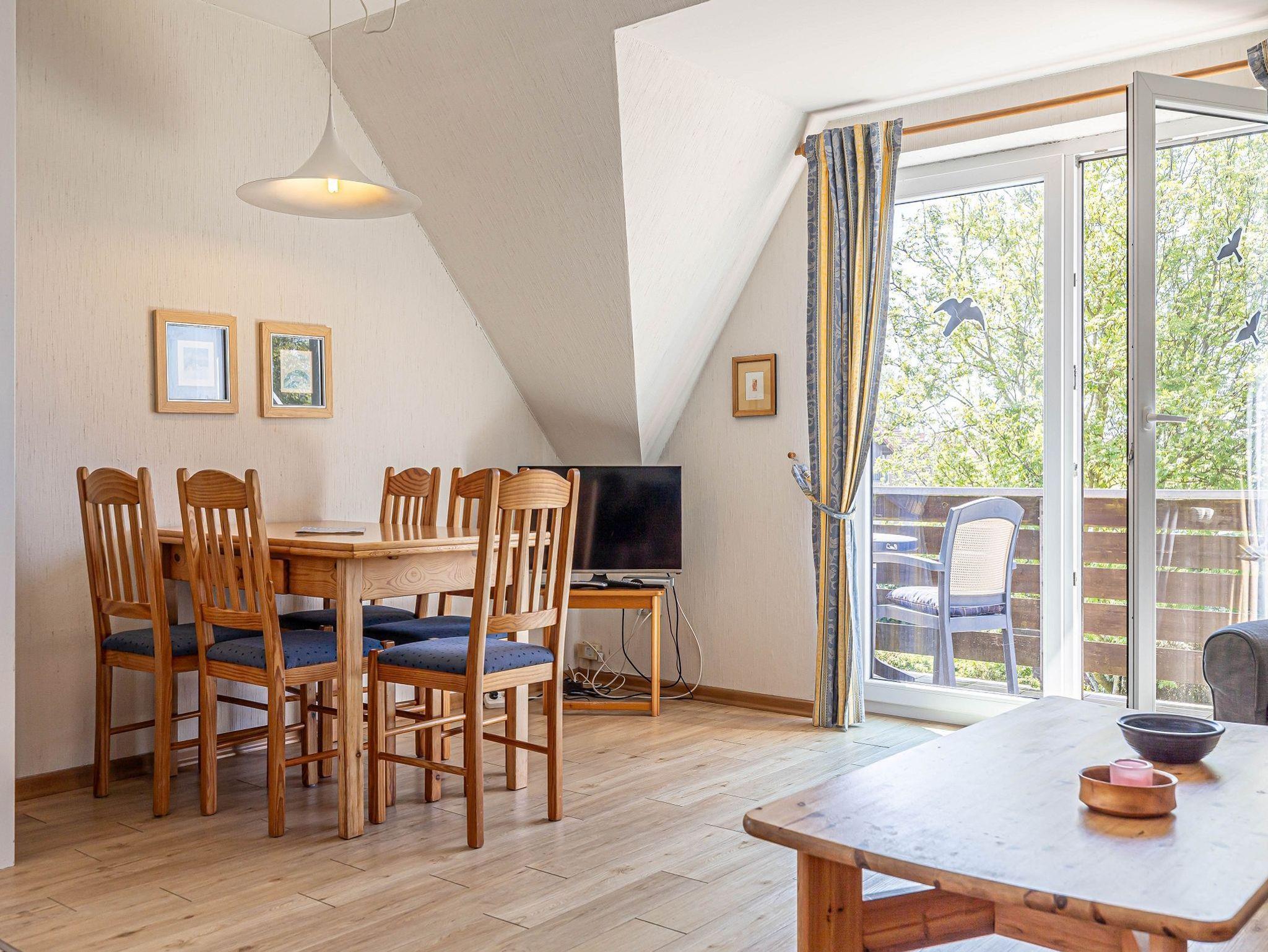 - offener Wohnbereich mit Flachbildschildschirm und Zugang zum Balkon mit Gartenmöbeln