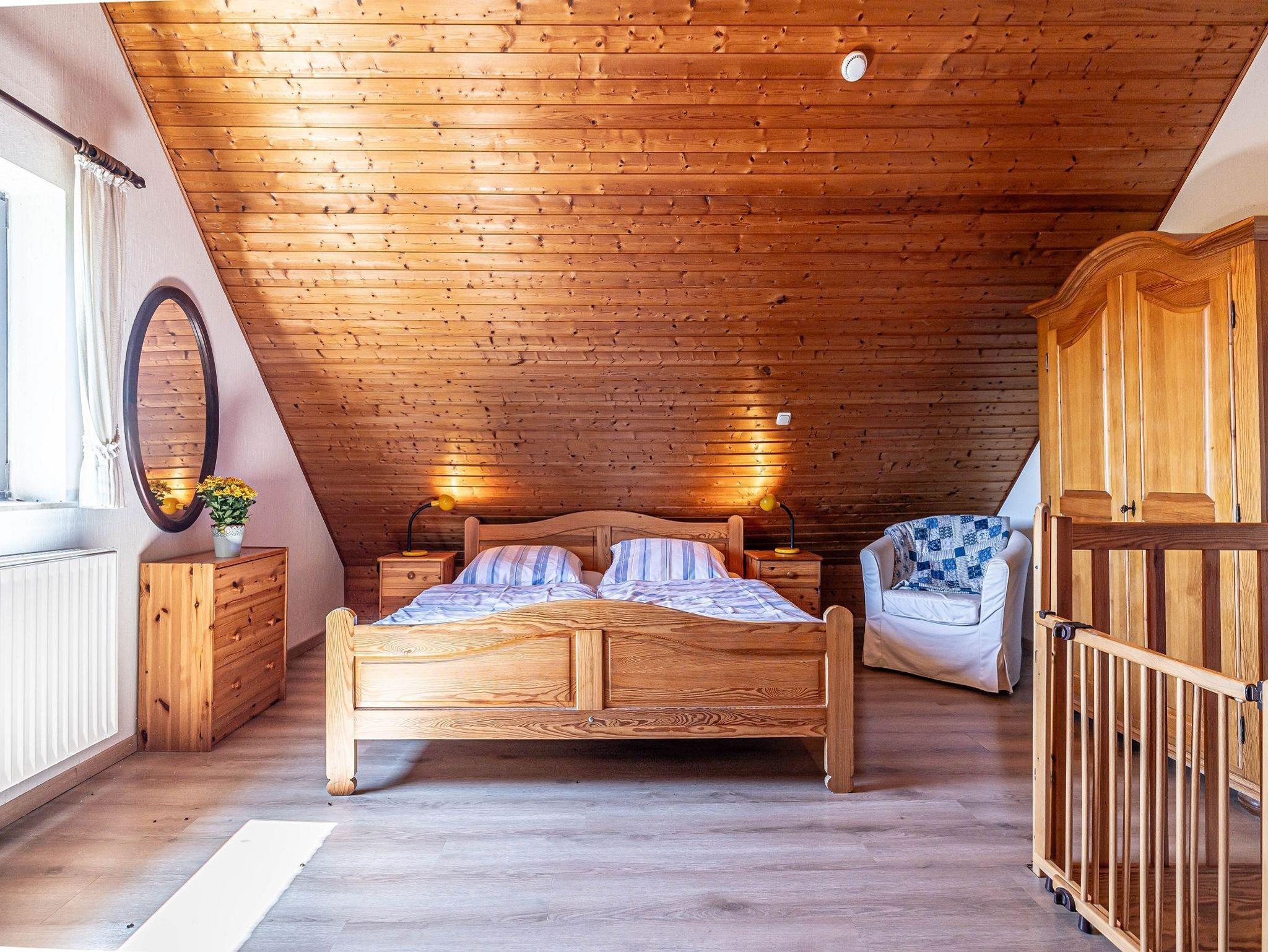 - Schlafzimmer mit Doppelbett (180x200), 1 Schlafsofa, 1 Kinderbett