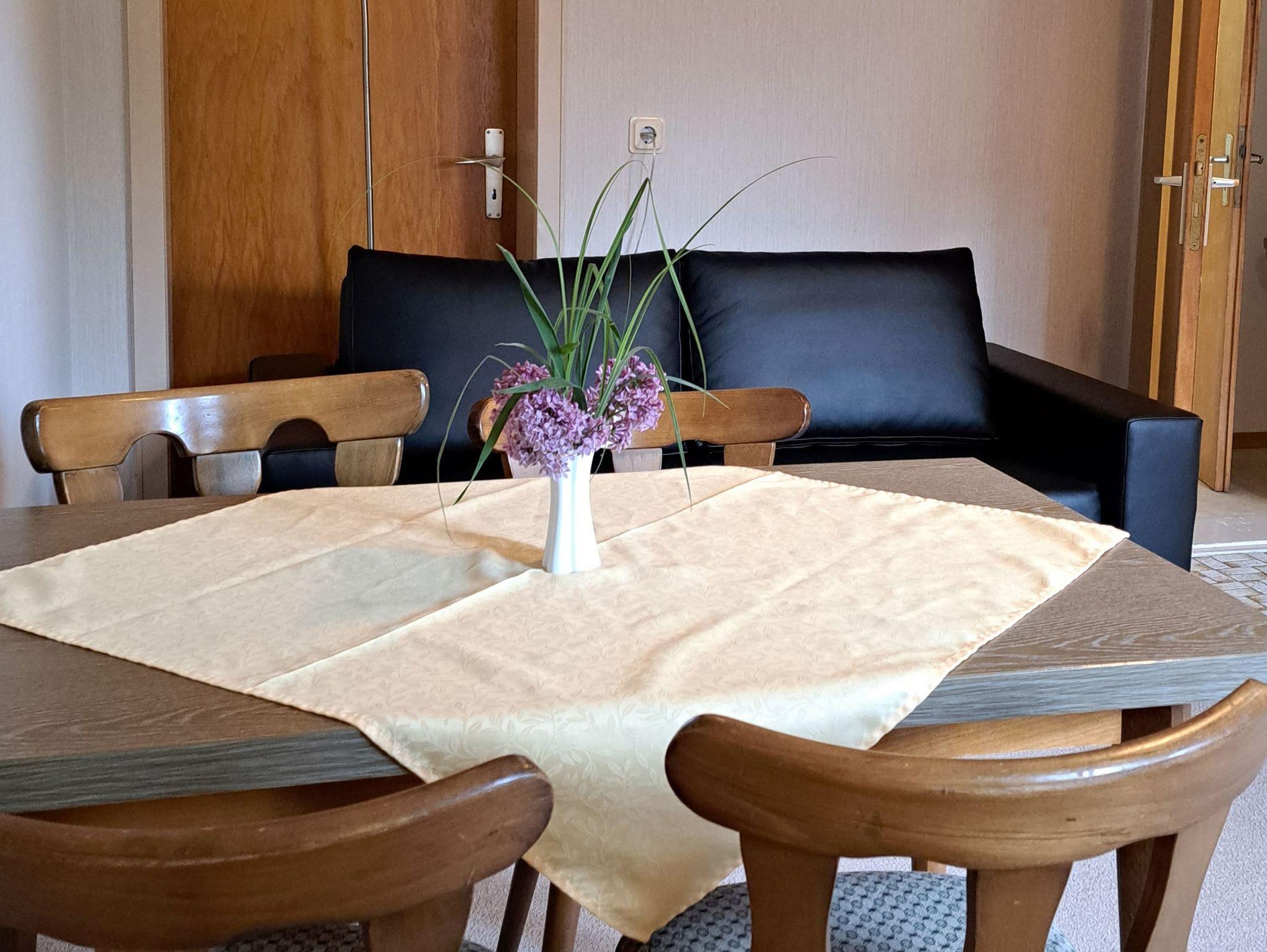 Gemütlich eingerichtet erwartet im Obergeschoss die Ferienwohnung 8 bis zu 4 Gäste. Fußböden überwiegend mit Teppich sorgen für ein wohliges Ambiente.