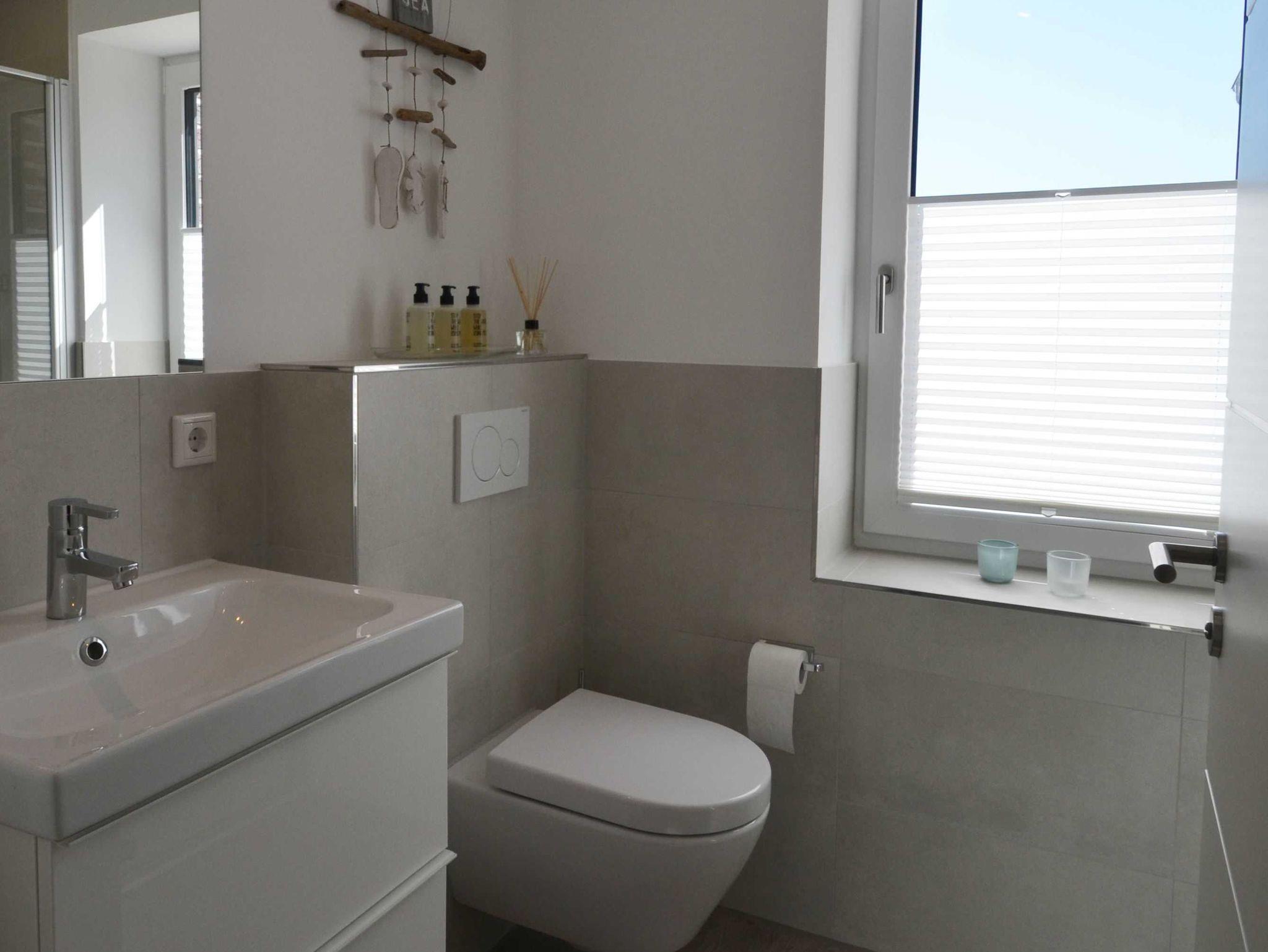 Zwei Schlafzimmer, ein Dusch-Bad, ein Gäste-WC, Waschmaschine und Trockner sowie eine Terrasse mit eingezäuntem Gartenbereich machen diese Ferienwohnung zu Ihrem perfekten Urlaubszuhause direkt an der Ostseeküste.