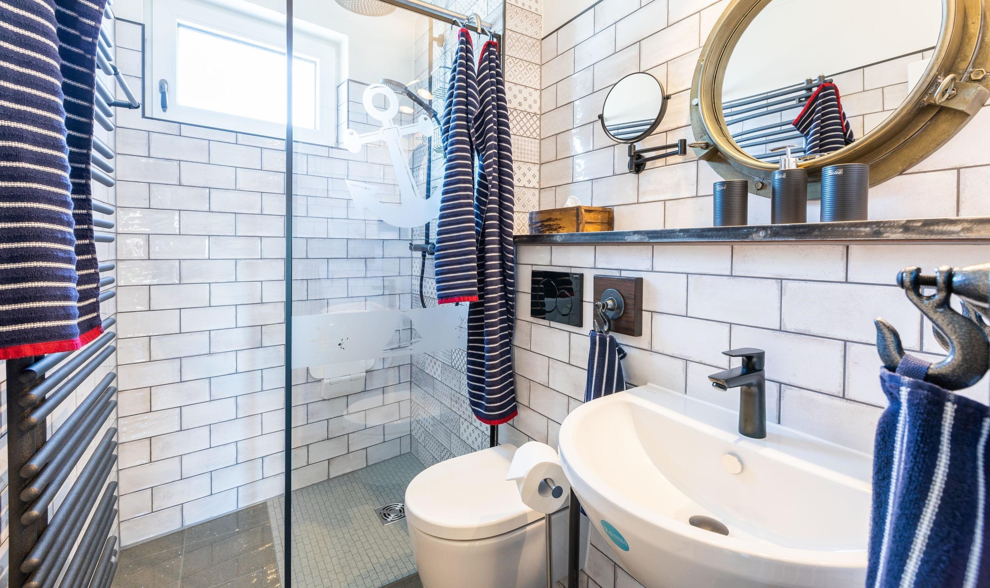 Unsere komplett kernsanierte und neu eingerichtete Ferienwohnung mit Terrasse wurde ist hell und modern im maritimer Shabby-Chic meets Industrial Style eingerichtet.