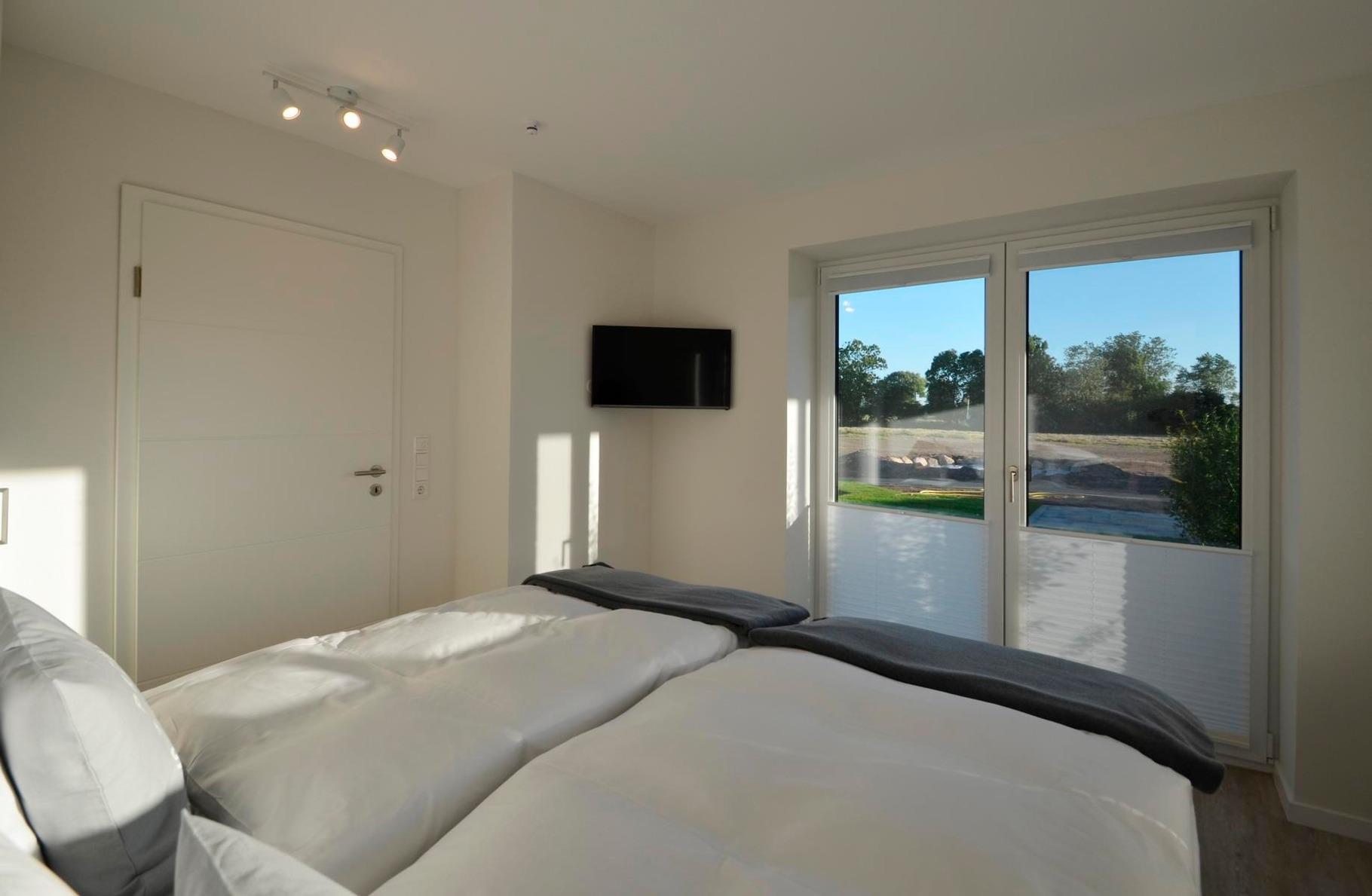 Besonderes Highlight ist, dass Sie von diesem Schlafzimmer auch ZUGANG in den GARTEN und auf die kleine Terrasse haben. Ein Flachbildfernseher ist hier ebenfalls installiert.