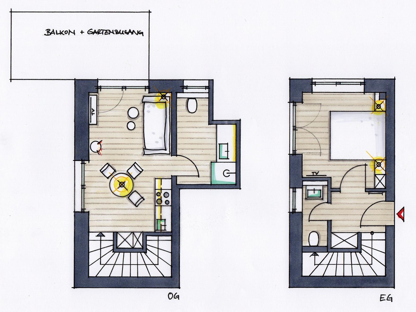 Der abgetrennte und EINGEZÄUNTE GARTENbereich rundet die Wohnung ab. Der Garten ist sowohl über die Treppe aus dem OG als auch direkt aus dem Schlafzimmer im EG zu erreichen.
