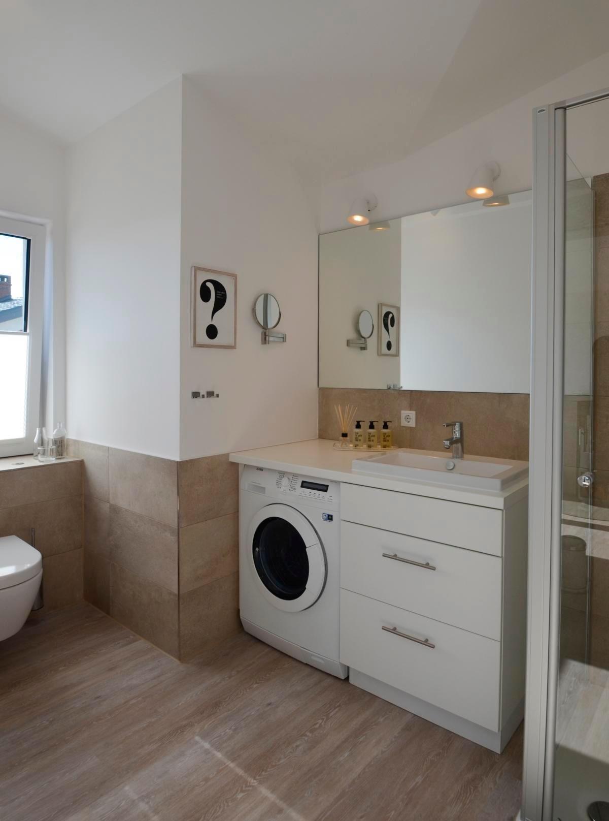 Ein WASCHMASCHINEn- und TROCKNERkombigerät befindet sich ebenfalls in diesem Bad. Selbstverständlich gibt es in der Wohnung auch einen Wäscheständer.