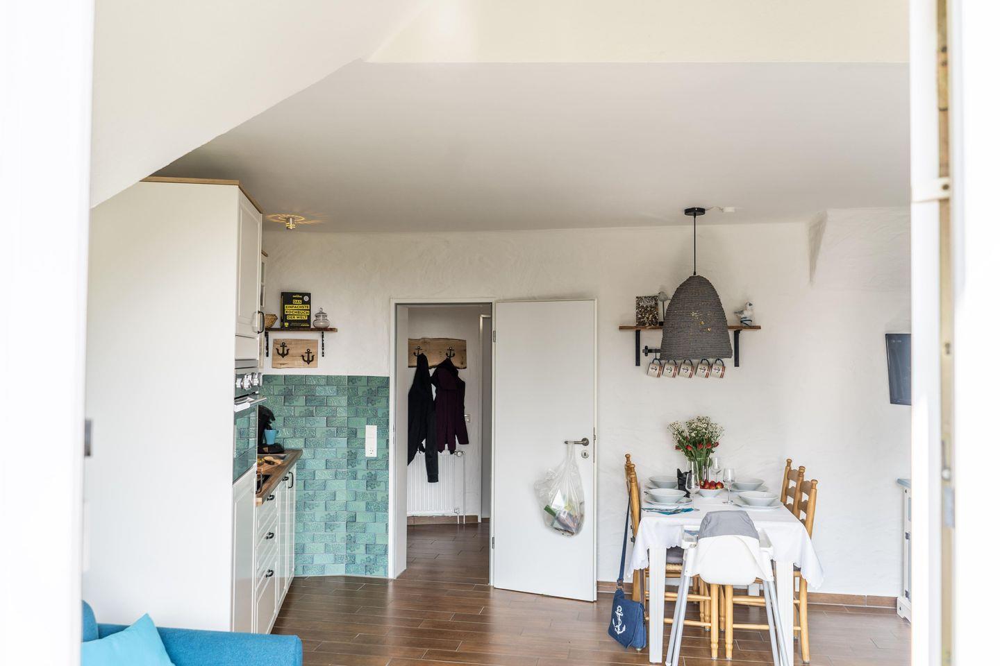 Diese charmante Ferienwohnung bietet Ihnen einen offen gestalteten Wohnbereich, mit angrenzender Küche & einen Balkon mit einzigartigem Meerblick. In den beiden Schlafzimmern finden Sie ein Doppelbett & 2 Einzelbetten vor. Das helle Badezimmer verfügt über eine ebenerdige Dusche. Das Highlight: Der gemeinschaftlich genutzte Bereich mit innenliegenden Gemeinschaftspool (bitte beachten: der Pool ist nach den Herbstferien bis Ostern nicht nutzbar), Gemeinschaftssauna und einem kleinen Garten.
