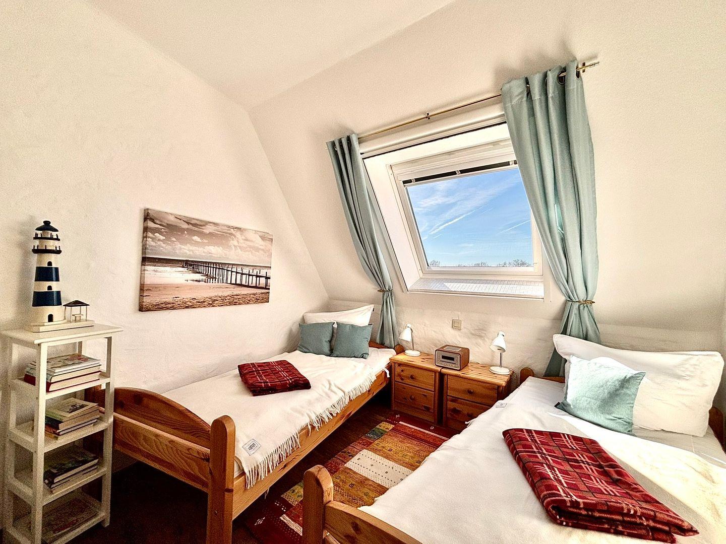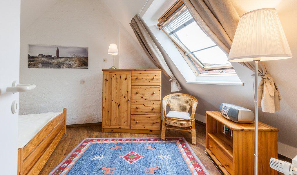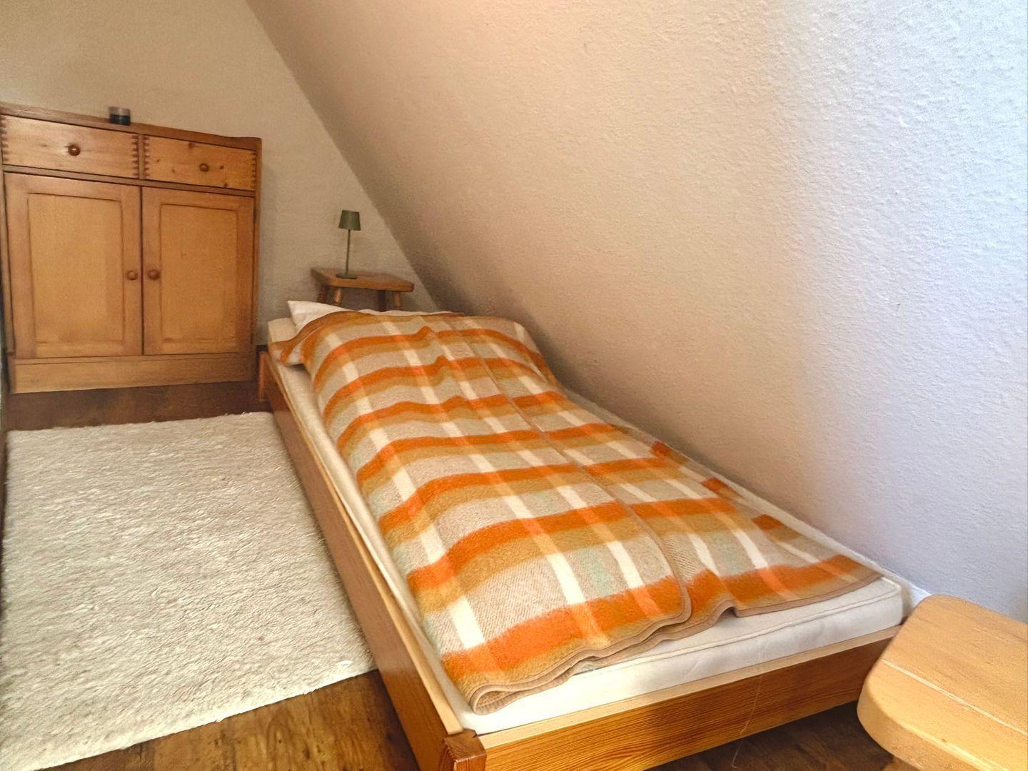 Im Dachgeschoss befindet sich eine Leseecke, der zweite Schlafraum ist mit einem Doppelbett (2x 80x200cm) und einem weiteren Einzelbett (90x200cm) ausgestattet.