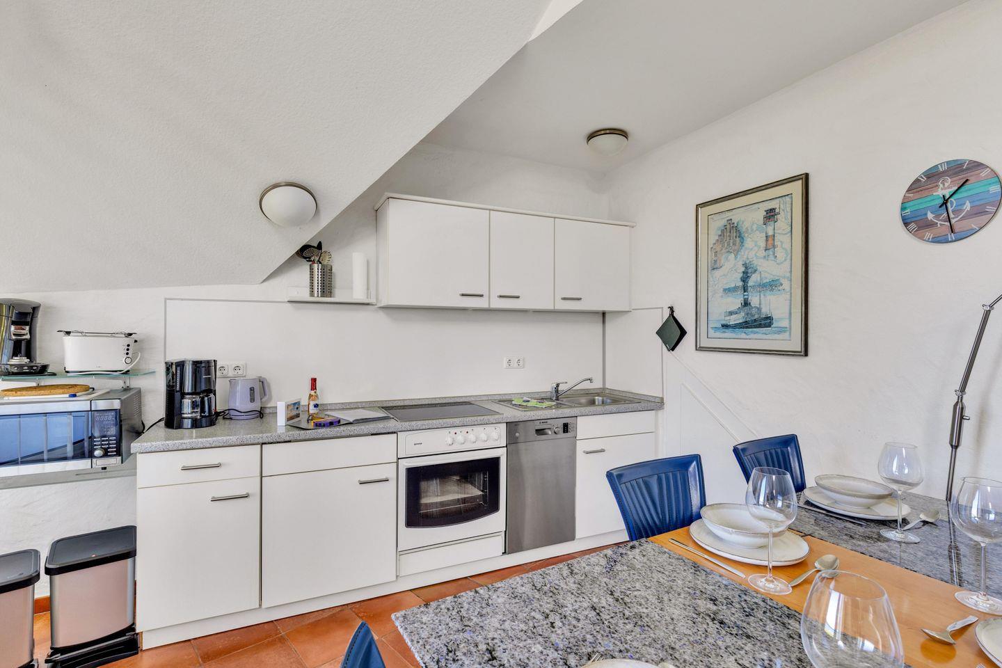Die lichtdurchflutete Wohnung lädt Dich zu entspannten Stunden ein und in der voll ausgestatteten Küche hast Du die Gelegenheit, Dich selbst mit einheimischen Spezialitäten zu versorgen.