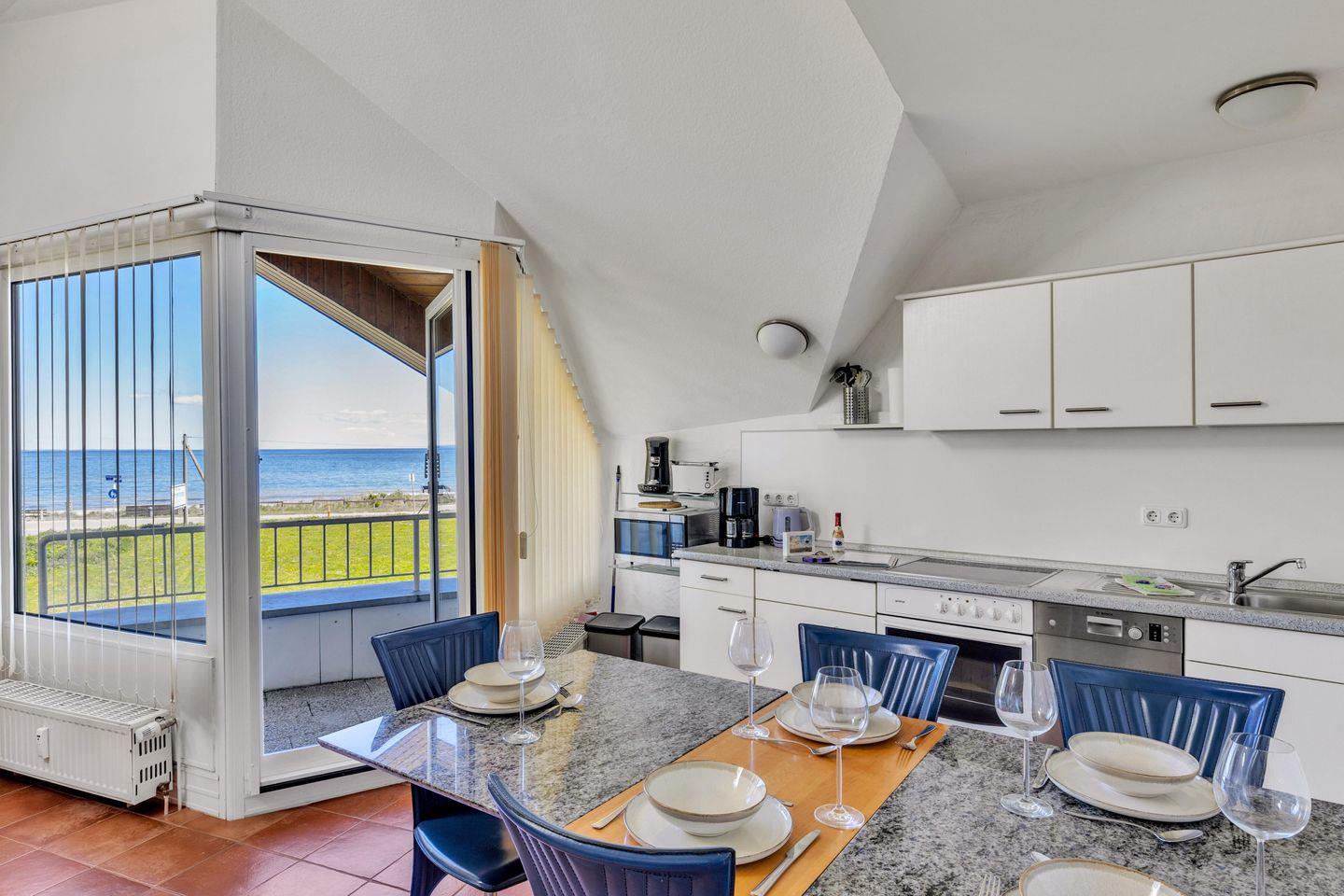 Ein zweiter Balkon bietet Dir ab mittags Sonne bis in den Abend hinein und blickt ebenfalls auf die See.