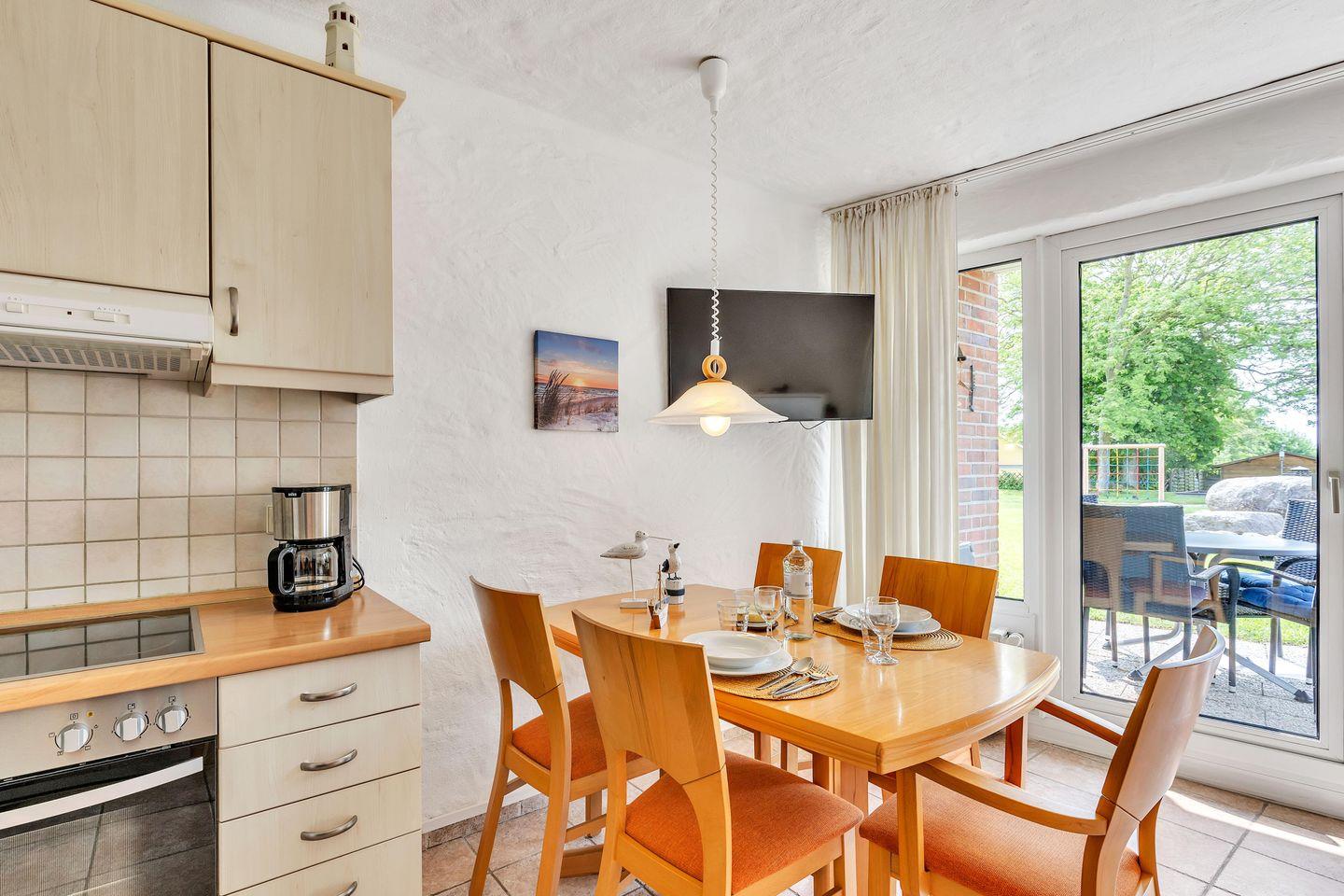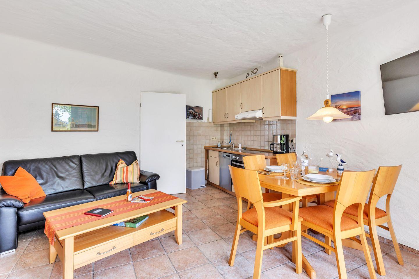 Das schöne Terrassen-Apartment Sünnschien liegt direkt am Strand von Kronsgaard und bietet Dir Platz für 4–5 Personen.