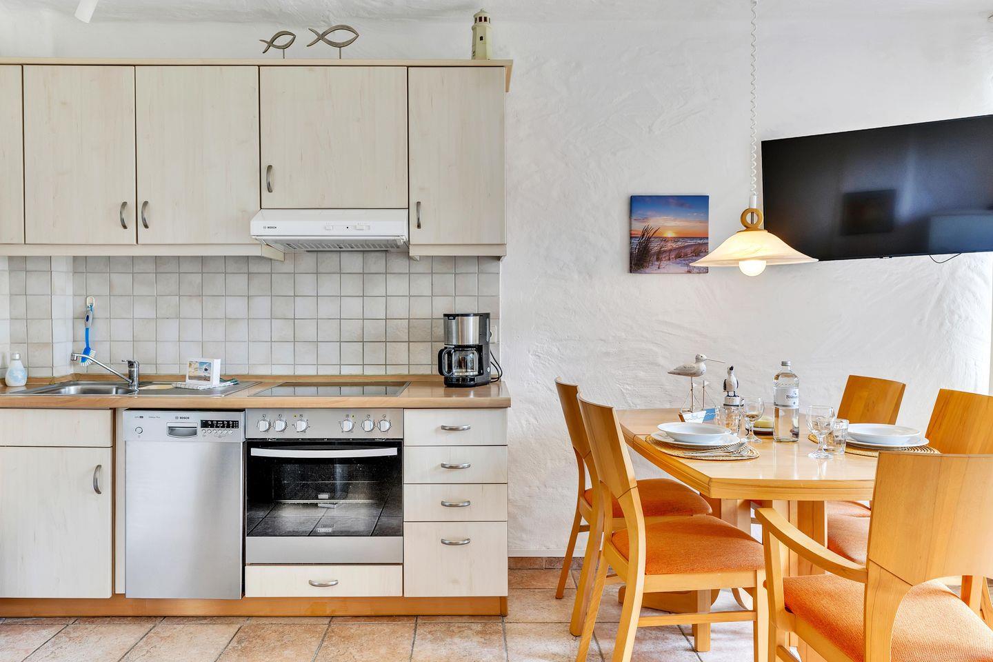 Neben dem Wohn- und Essbereich bietet Dir die geräumige Küche alles, was Du für die Zubereitung leckerer Mahlzeiten benötigst.