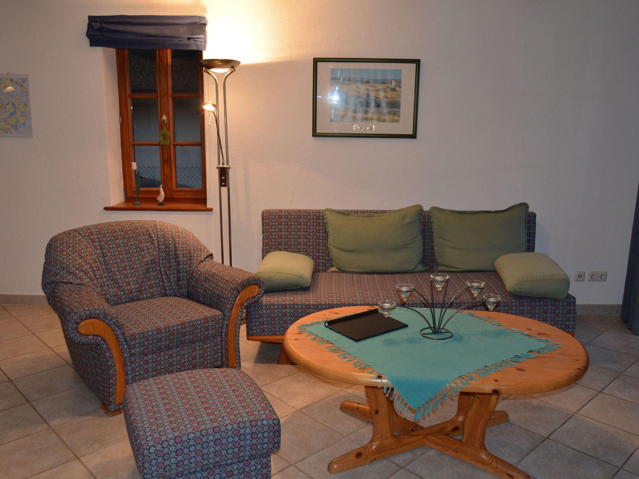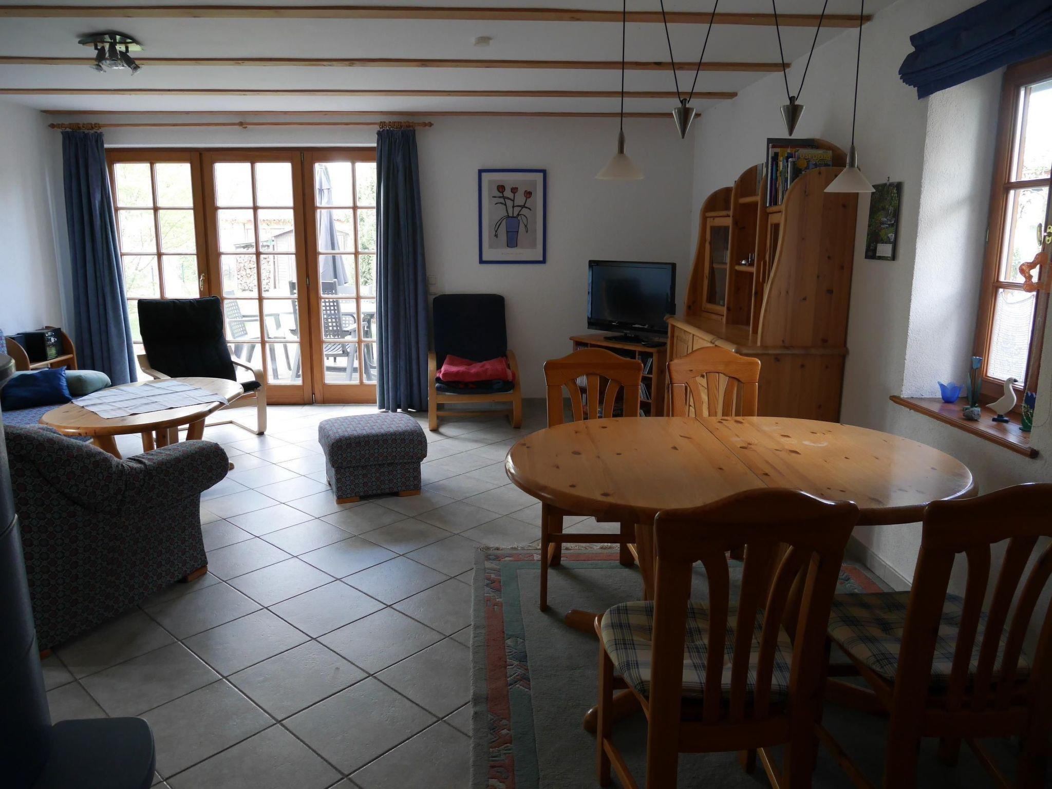 Im Inneren des Hauses erwartet Sie im Erdgeschoss ein gemütliches Wohnzimmer mit Zugang zur Terrasse und Blick auf den Garten. Das Wohnzimmer ist ausgestattet mit Kamin, Sat-TV, DVD- und CD-Player sowie einer kleinen Büchersammlung. Der Übergang zur voll ausgestatteten Küche wird durch einen Eichenholz-Esstisch für sechs Personen bereichert. Die Küche verfügt über Markengeräte und alles Nötige für das Kochen und Backen. Ein Badezimmer mit Badewanne, Dusche und Fußbodenheizung sowie ein Hauswirtschaftsraum mit Waschmaschine komplettieren das Erdgeschoss. Über eine kleine Wendeltreppe gelangt man in die erste Etage mit zwei großzügigen Schlafzimmern, jeweils ausgestattet mit Doppelbetten, Nachttischen und ausreichend Stauraum.