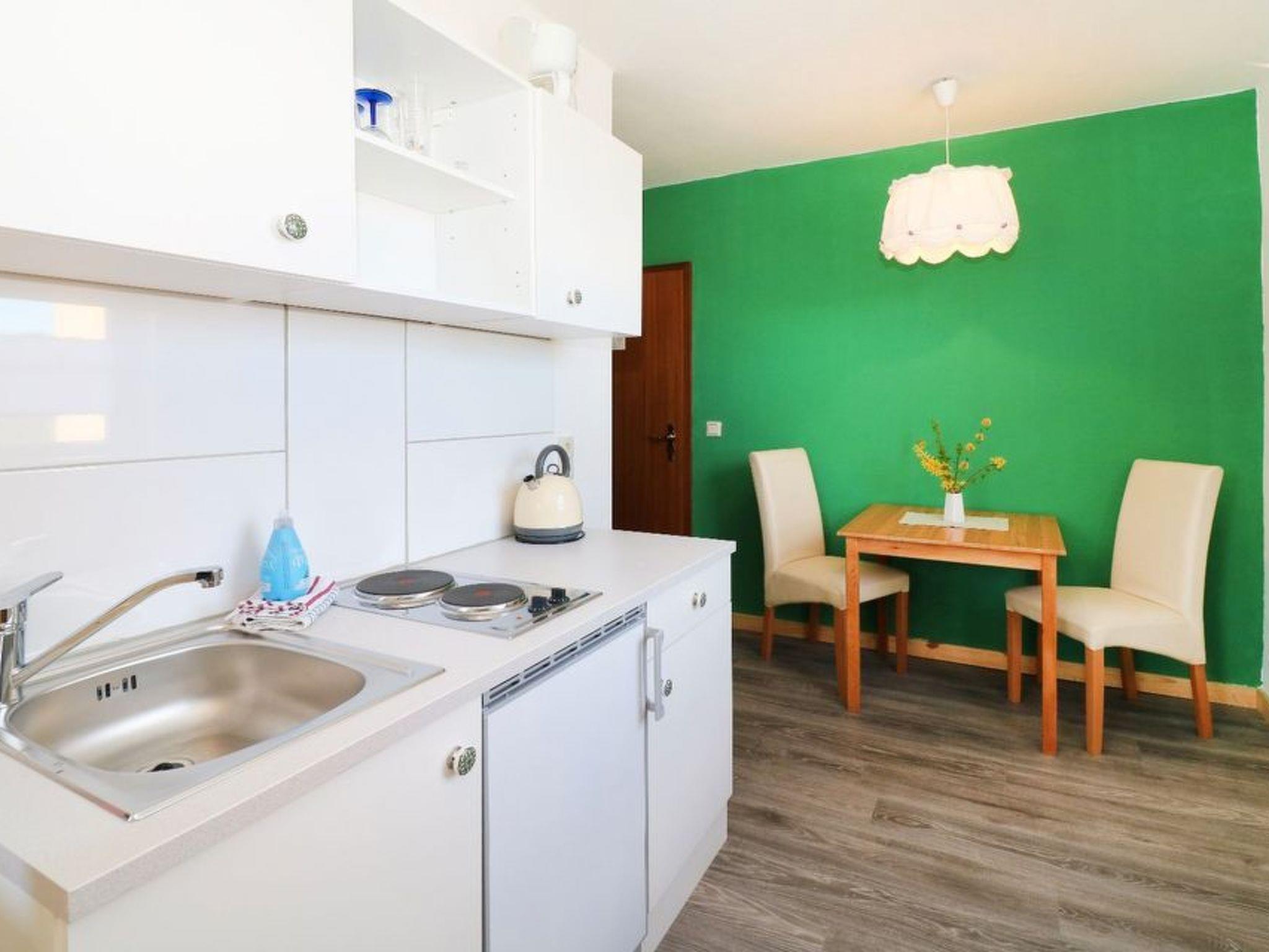 Die Miniküche verfügt über ein 2 Platten Kochfeld, ein Backofen ist nicht vorhanden. Filterkaffeemaschine, Toaster und Wasserkocher sind natürlich vorhanden.
