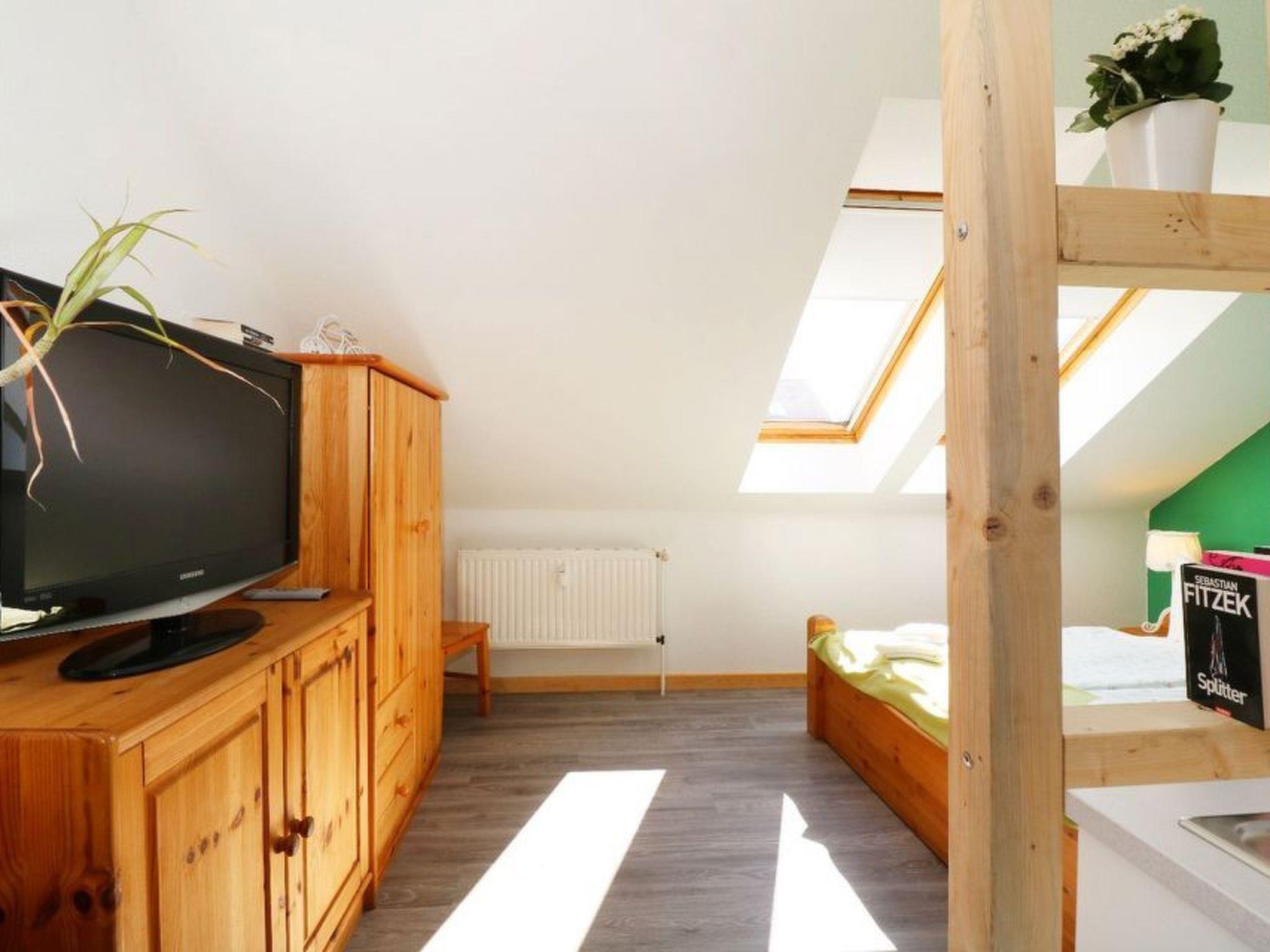 Das Objekt in dem sich die Wohnung befindet, ist ein ehemaliger Ferienpark, den wir vor drei Jahren übernommen haben und in das wir viel Zeit und Arbeit gesteckt haben. Im Zuge dessen haben wir auch diese Wohnung liebevoll umgestaltet. Es gibt ein 1,60 m Doppelbett, eine Miniküche und einen Esstisch mit drei Plätzen in einem Raum und ein Badezimmer mit Dusche.