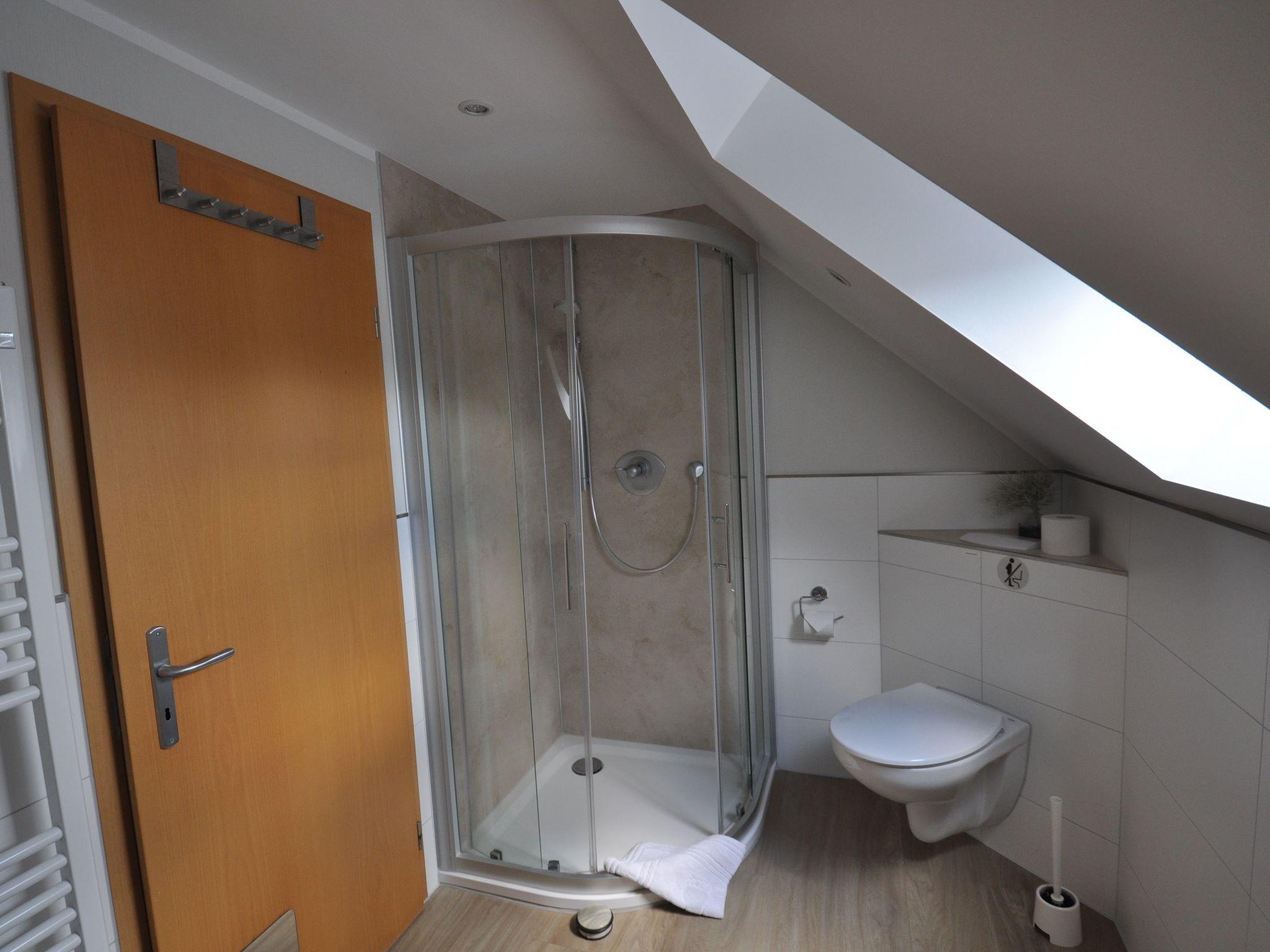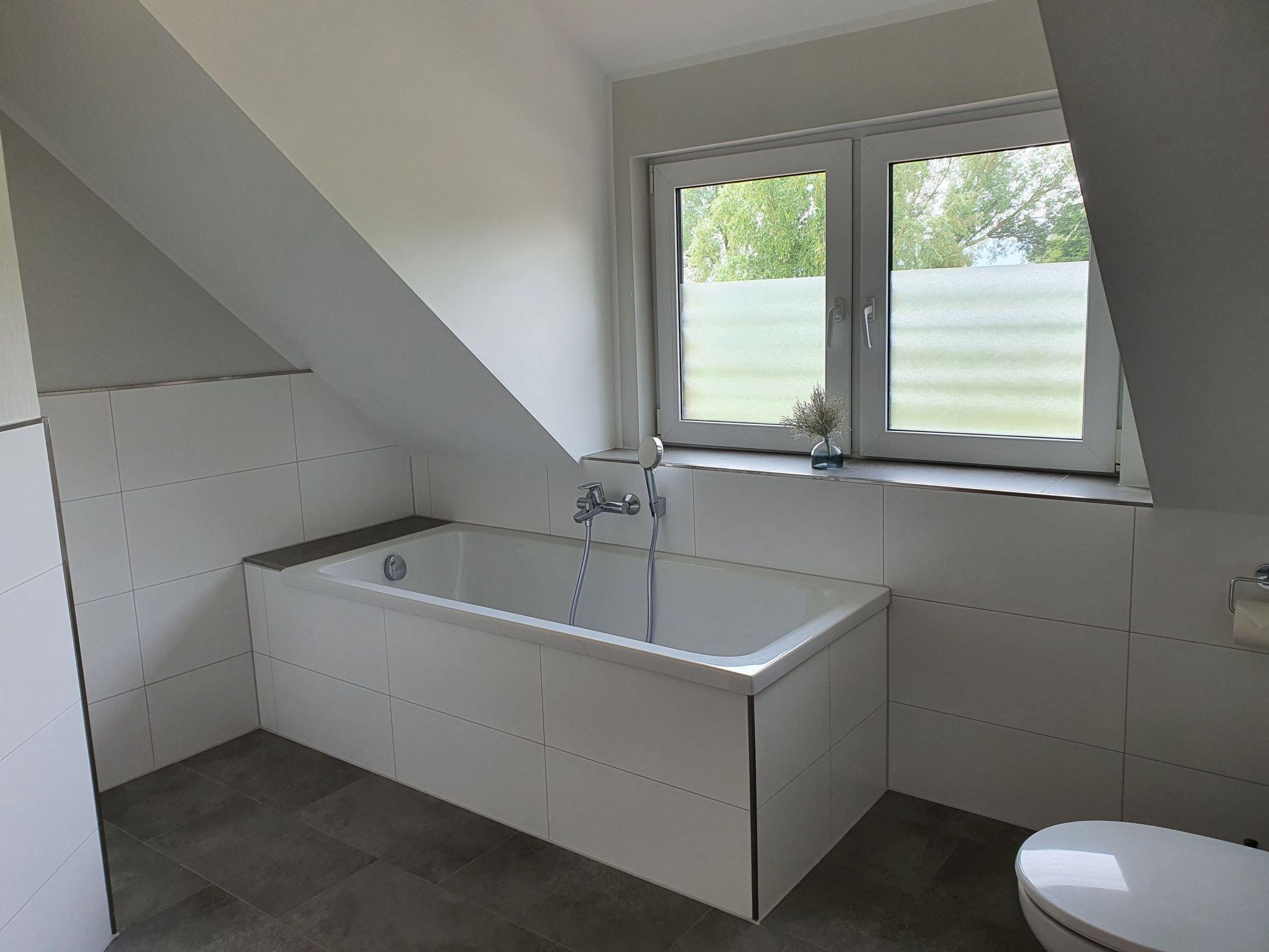 Ihre Ferienwohnung im ersten Obergeschoss hat eine Wohnfläche von ca. 100 qm und ist für die Unterbringung von vier Erwachsenen (und 2 Kleinstkinder) hervorragend geeignet. Im Obergeschoss erwartet Sie ein großer, kombinierter Wohn- und Essbereich mit einer gemütlichen Couchecke. Eine große Küche sowie ein Wannenbad befindet sich auch auf der Etage. Im Dachgeschoss sind die zwei Schlafzimmer mit je einem großen Boxspringbett 1,80 m breit (mit durchgehender Matratze) und ein schönes Duschbad mit Tageslicht.