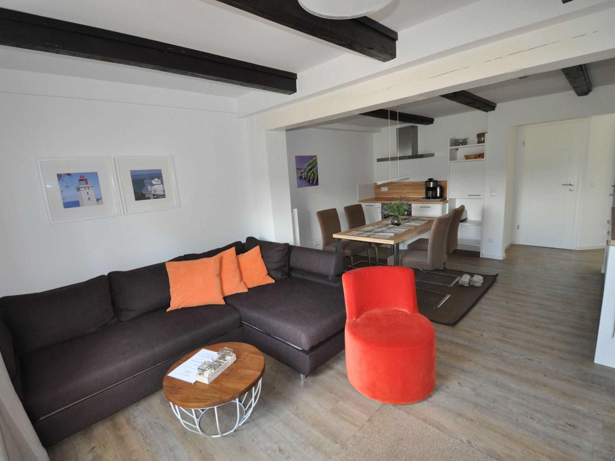 Die Maisonettewohnung hat eine Wohnfläche von circa 75 m² und ist für die Unterbringung von vier Erwachsenen hervorragend geeignet. Im Erdgeschoss erwartet Sie ein großer, kombinierter Wohn-und Küchenbereich mit einer gemütlichen Couchecke, einem Essplatz für vier Personen und der komplett ausgestatteten Küche. Im oberen Stockwerk unter der Dachschräge befinden sich zwei Schlafzimmer. Tageslicht erhalten Sie durch die eingebauten Dachfenster. Beide verfügen über ein Boxspringbett mit 160 cm Breite und getrennter Matratze sowie einen Kleiderschrank. Außerdem gehört ein gut geschnittenes Badezimmer mit Dusche, WC und Tageslicht zur Wohnung. Alle Räume sind beheizbar.