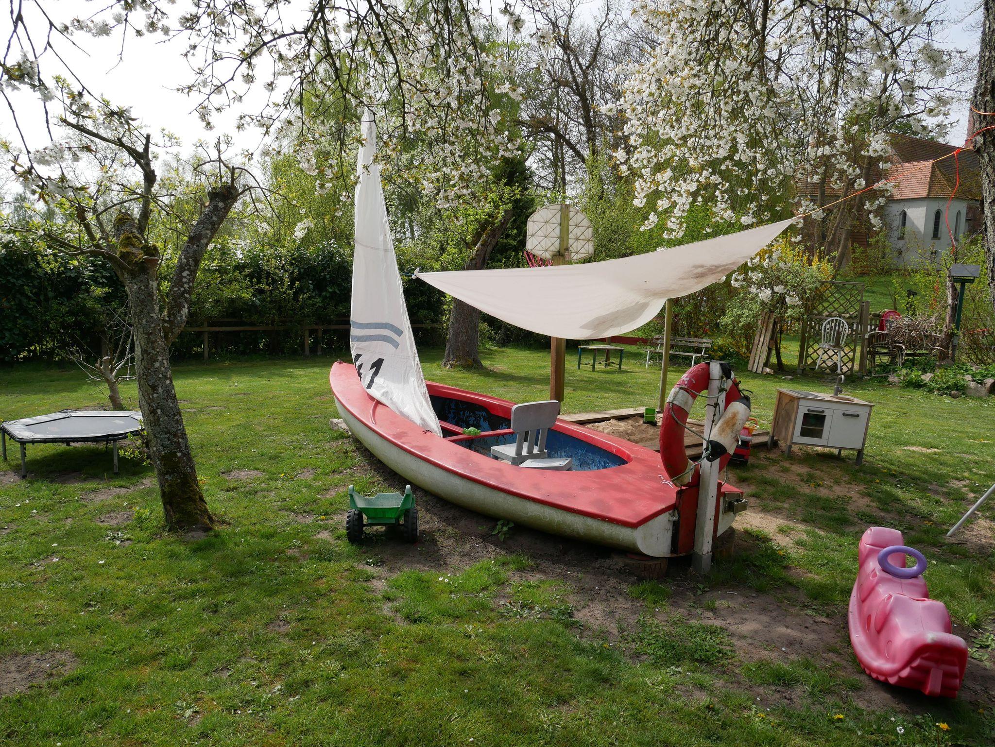 Garten & Erholung: Großer Garten mit Sitzgelegenheiten, hauseigenen Gartencafé Naschkatze,Liegewiese, Tischtennisplatte sowie ein kleiner Spielplatz im Garten und Grillmöglichkeit. FeWo 3 verfügt über eine eigene Terrasse & privaten Gartenbereich. FeWo 1 & 2 bieten schönen Gartenblick, FeWo 2 zusätzlich anoramablick auf den Wieck.