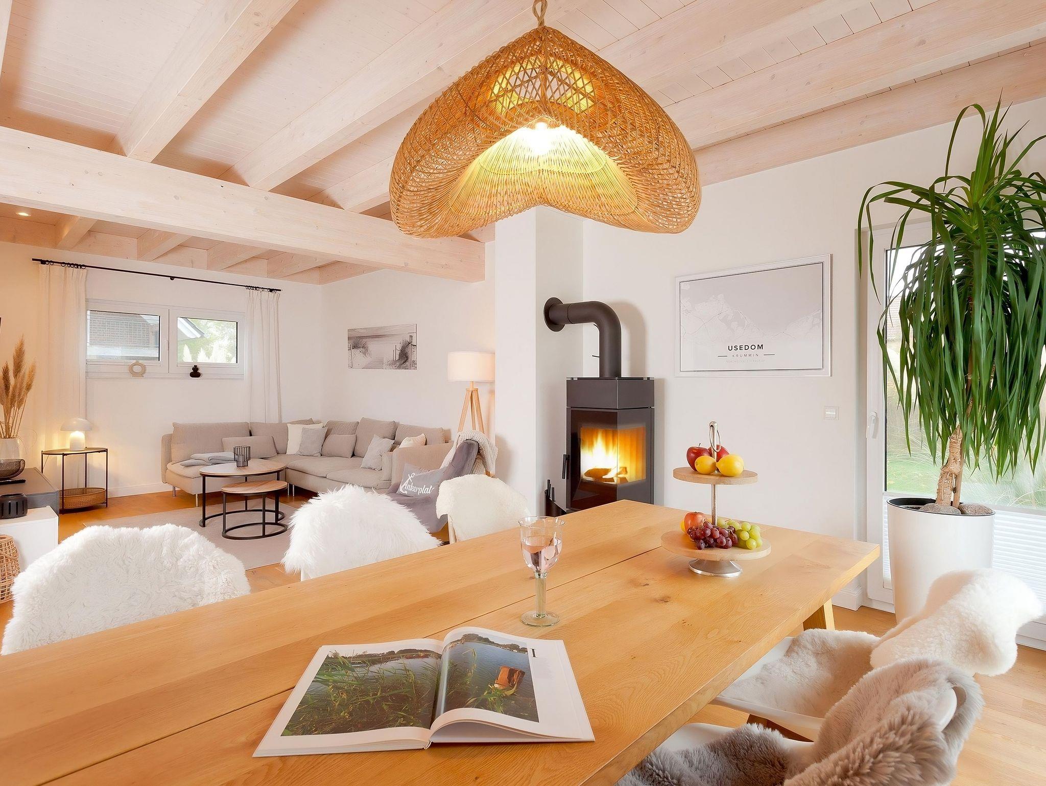 Das Ferienhaus Ankerplatz No. 2 auf Usedom bietet Sauna, Kamin, Garten und WLAN für erholsame Tage in naturnaher Ruhe.