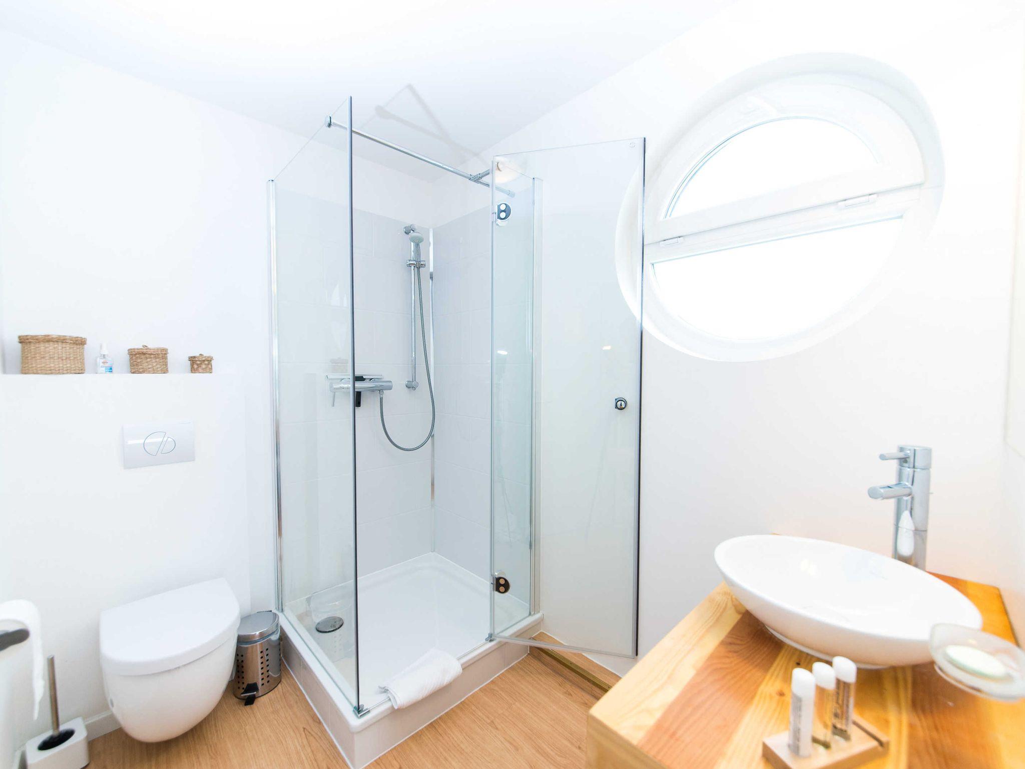 Viele Details und eine individuelle Einrichtung sorgen für ein Wohlfühlen im Hausboot auf den ersten Blick. Morgens lächelt die Sonne durch die bodentiefen Fenster ins Wohnzimmer und lässt den Tag mit viel Sonnenschein beginnen. Abends lädt die Terrasse mit einem Panorama-Blick über die Krumminer Wiek zu einem Glas Wein und einen Blick in den Sternenhimmel ein. Im Herbst und Winter sorgen viele Kerzen und eine Fußbodenheizung für eine behagliche und kuschelige Atmosphäre im Wohnzimmer. Für die Erkundung der Umgebung stehen Fahrräder und Kanus am Hafen bereit. Mit einem optionalen Segeltörn vom Naturhafen aus entdecken Sie mit einem Skipper die maritime Seite Usedoms. Im Ort Krummin erwarten Sie idyllische Gartencafés.