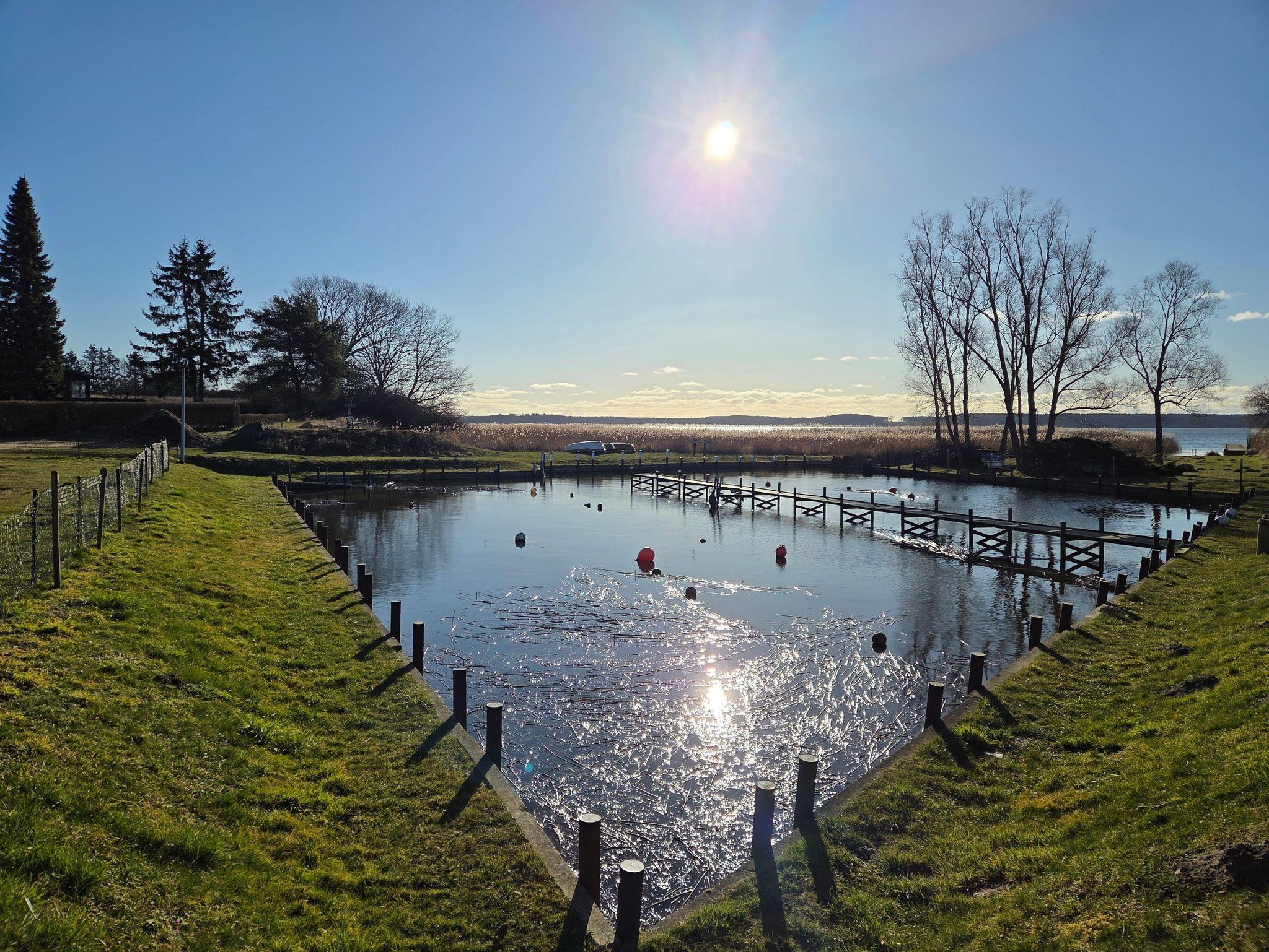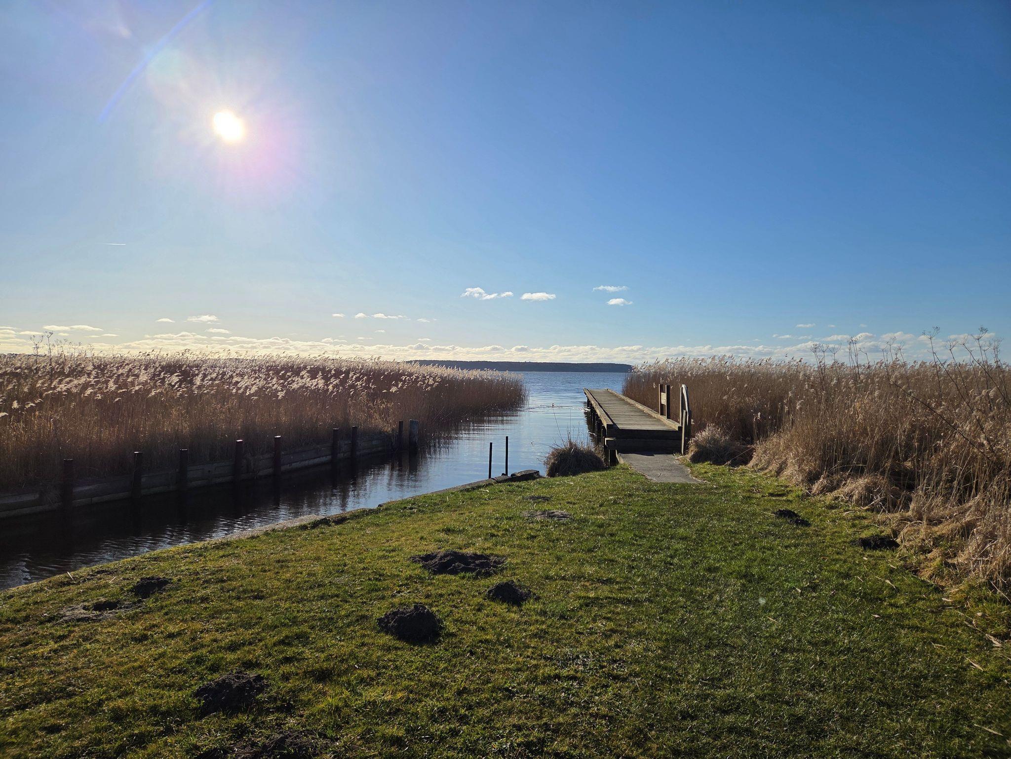 Zum Wasser mit Badestelle , Hafen und Spielplatz sind es ca. 200 m.