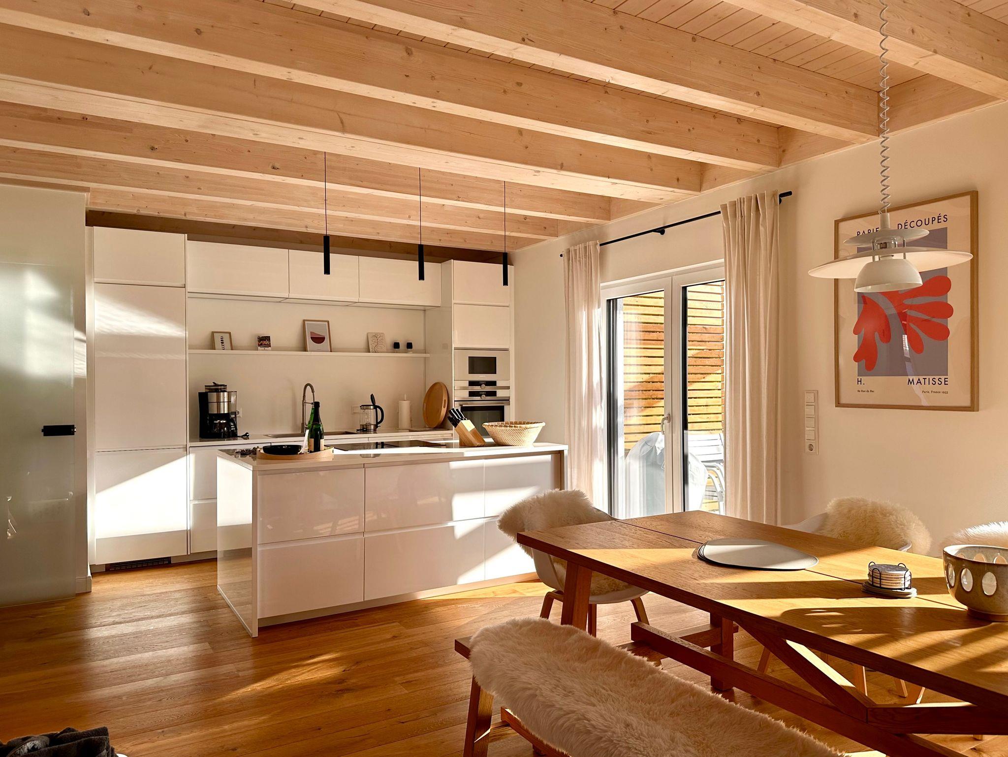 Ferienhaus No. 2: ca. 140 m², 3 Schlafzimmer, offener Wohn/Essbereich mit Kamin, Küche, Bad mit Sauna, Terrasse & Garten.