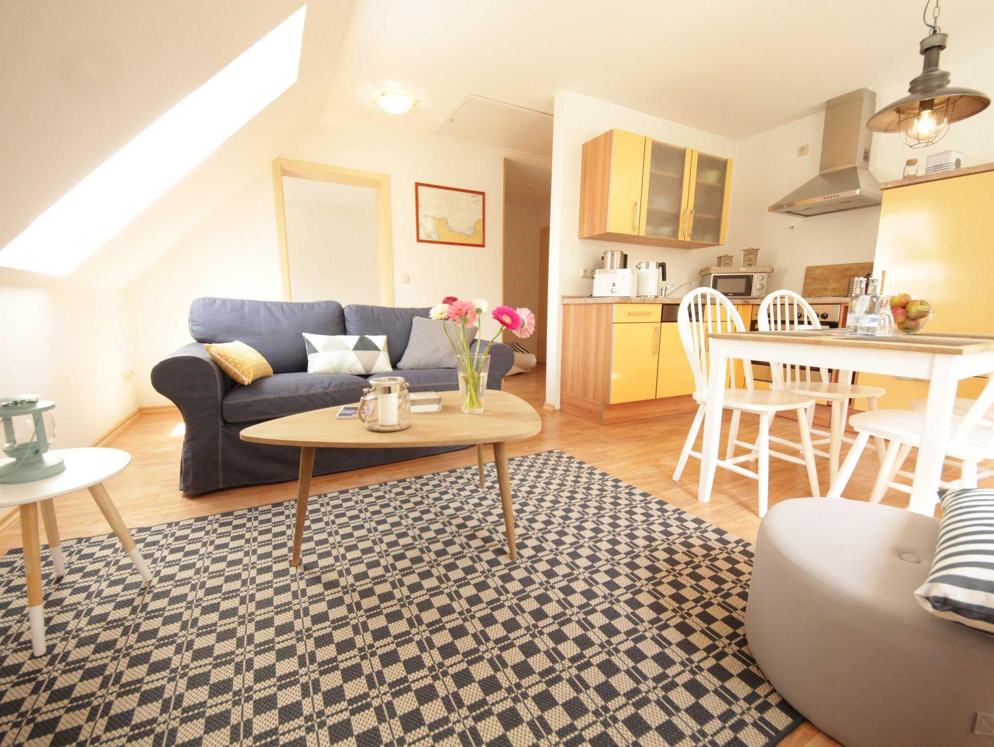 Die freundlich eingerichtete Achterkajüte hat alles, was für eiin Aufenthalt benötigt wird. Mit 58 qm bietet sie alles für einen Unsedomaufenthalt für 4 Personen.
