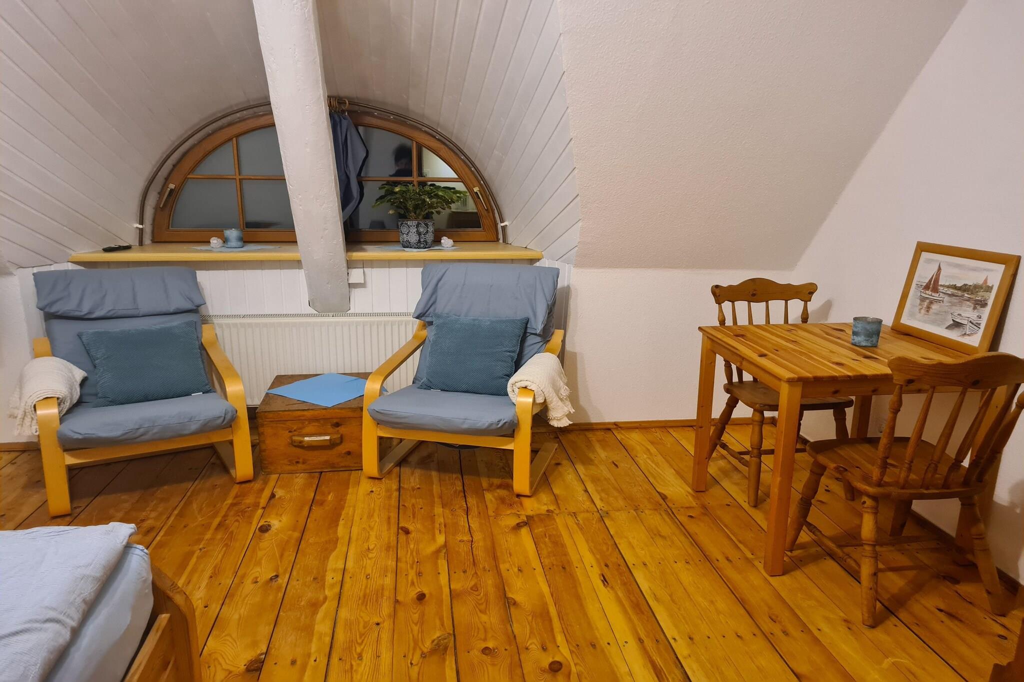 Eingebettet im ruhigen Dorf Krusenhagen bietet diese gemütliche Wohnung im 1. Stock eine gut ausgestattete Unterkunft, nur 7 km vom hanseatischen Charme Wismars entfernt. Ideal für Paare oder kleine Familien: Der offene Wohn-/Schlafbereich verfügt über ein Doppelbett, einen Fernseher und einen Essbereich. Die kompakte Küche ist mit Elektrokochplatten, einer Pad-Kaffeemaschine, einer Kombi-Mikrowelle und einem Kühlschrank ausgestattet – perfekt für leichte Mahlzeiten und den Morgenkaffee. Das Badezimmer ist mit Dusche, WC, Waschbecken und Haartrockner ausgestattet, und durchdachte Extras wie ein Kinderbett und ein Hochstuhl machen es familienfreundlich. Draußen erwartet Sie ein privater Garten mit Möbeln, Sonnenschirm, Sandkasten und Spielgeräten – sowie ein Gartenhaus als Abstellraum und Parkplätze auf dem Gelände. Mit Bäckereien und Restaurants im Umkreis von 6 km und dem Flughafen Hamburg in 100 km Entfernung verbindet diese haustierfreundliche Unterkunft ländliche Ruhe mit einfachem Zugang zu den Highlights der Küste und lokalen Dienstleistungen.