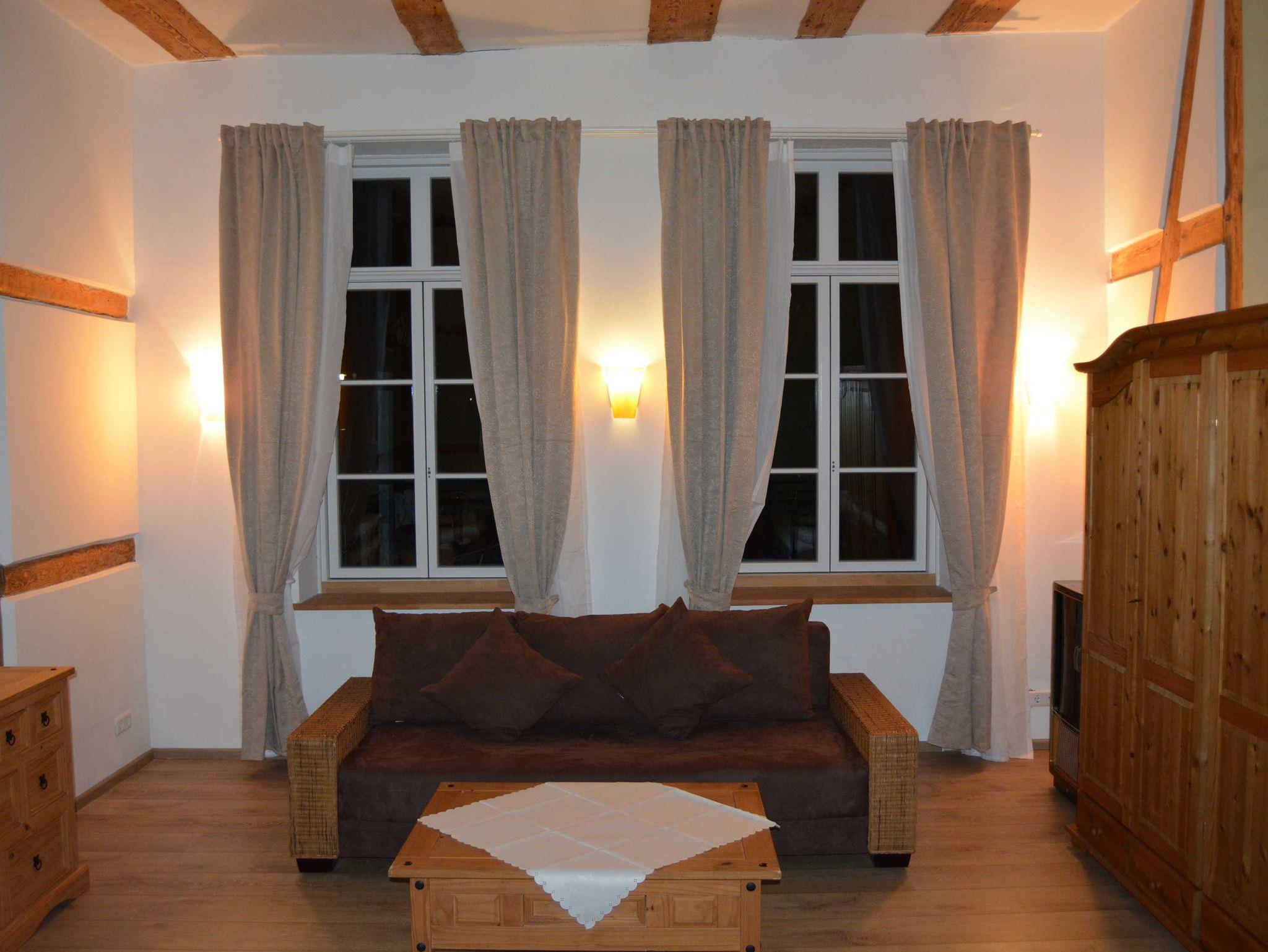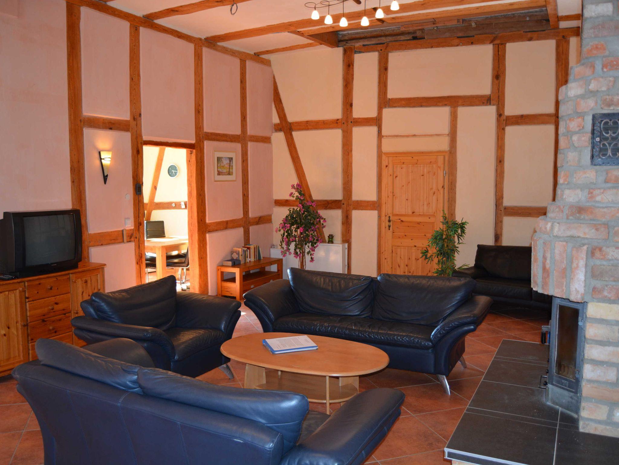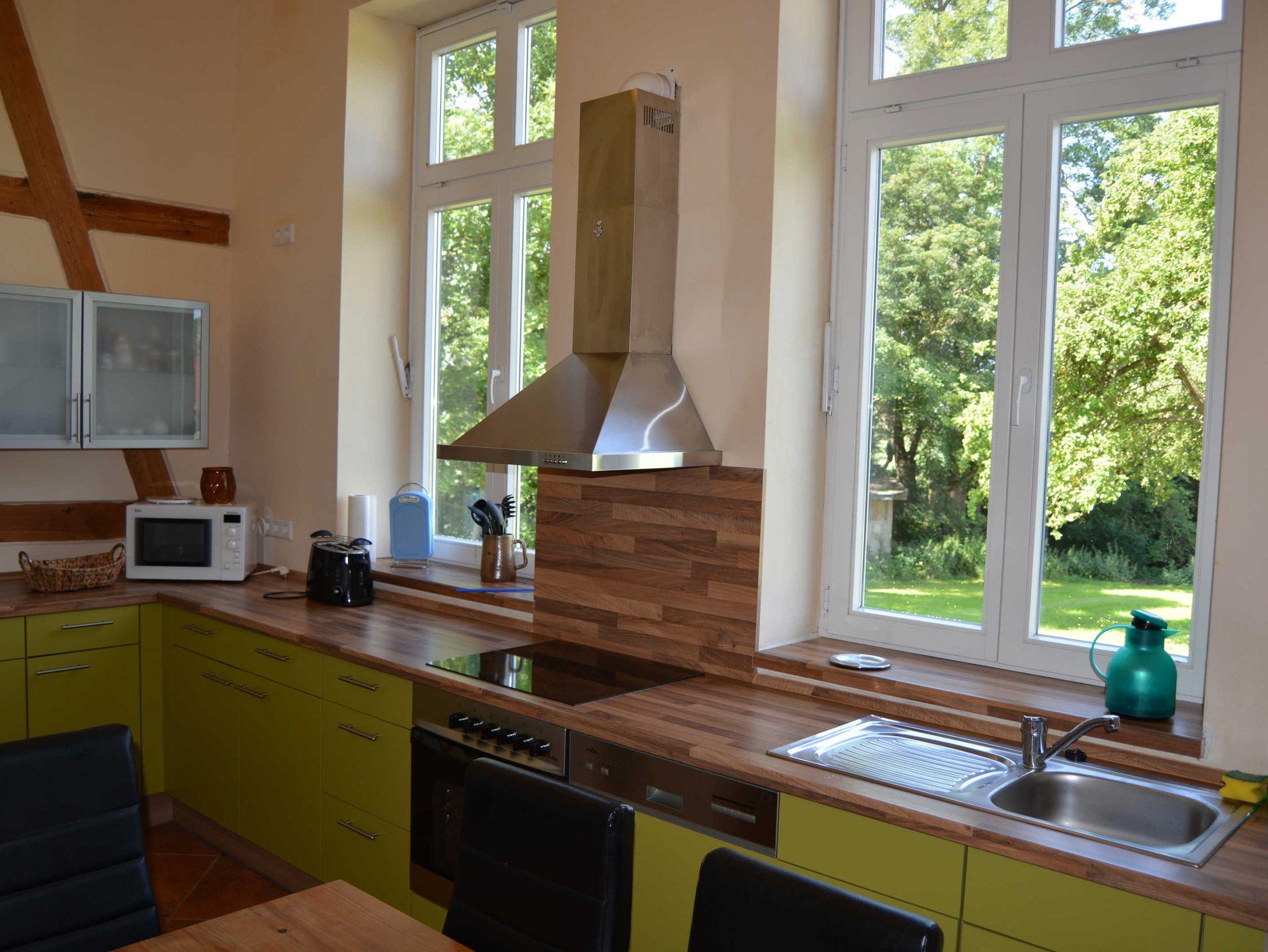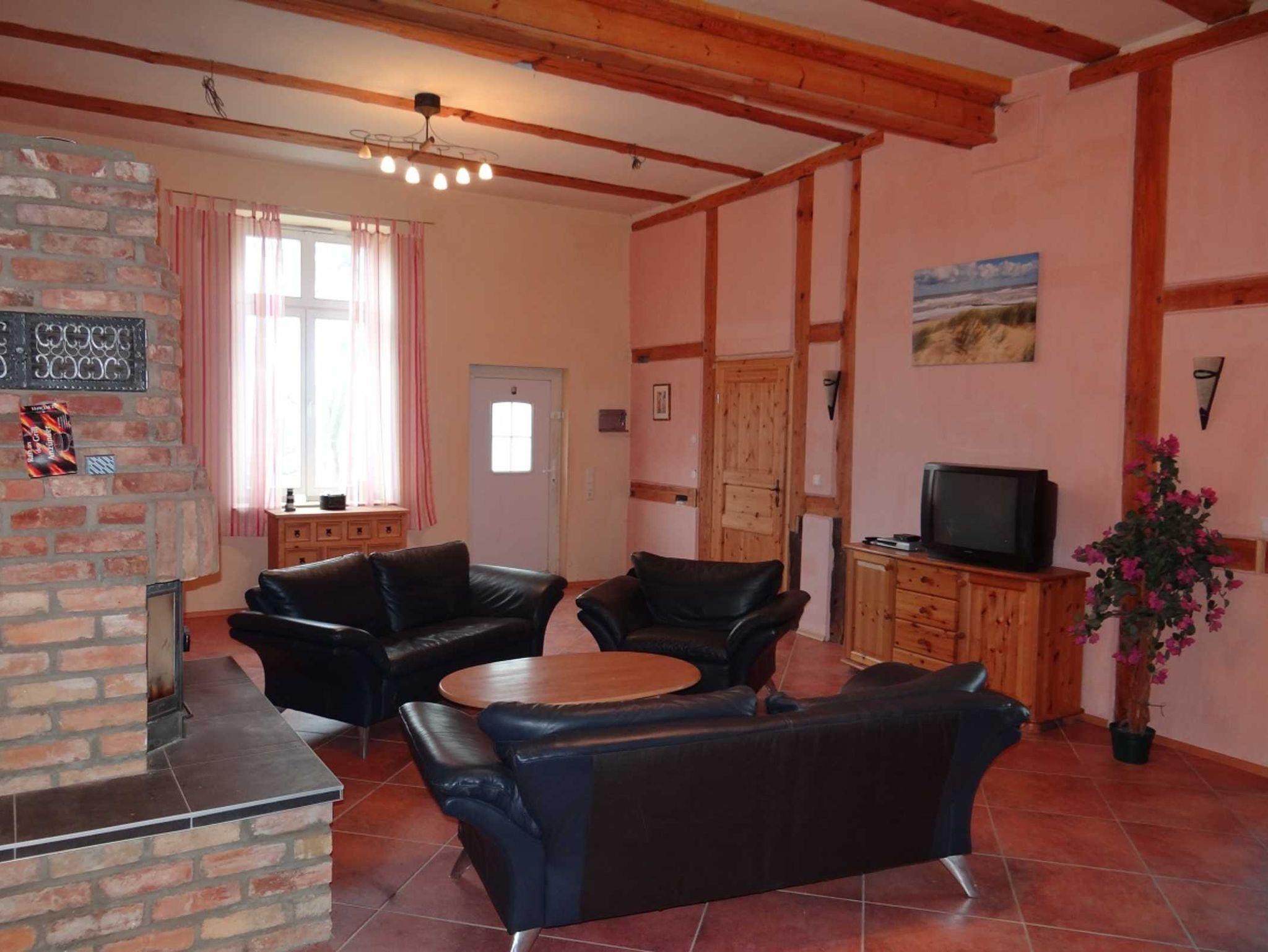 Die Ferienwohnung Fuchsbau liegt im Erdgeschoss, ist ca. 125 m² groß und verfügt über einen separaten Eingang. Die hohen Räume mit den alten Eichenbalken sowie dem Kamin vermitteln einen grosszügigen und gleichzeitig gemütlichen Eindruck. Von der in Richtung Südwest gelegenen Terrasse (ca. 25qm) und aus dem Esszimmerbereich hat man einen wunderschönen Blick bis zur Ostsee. Die Küche verfügt über Herd/Ofen/Spül-/Waschmaschine. Das große Wohnzimmer ist mit einem Kamin ausgestattet. Beheizt wird die Ferienwohnung über eine Fussbodenheizung. Sie verfügt über 2 separate Schlafzimmer (Doppelbett bzw. Doppelbett und 2 Einzelbetten).