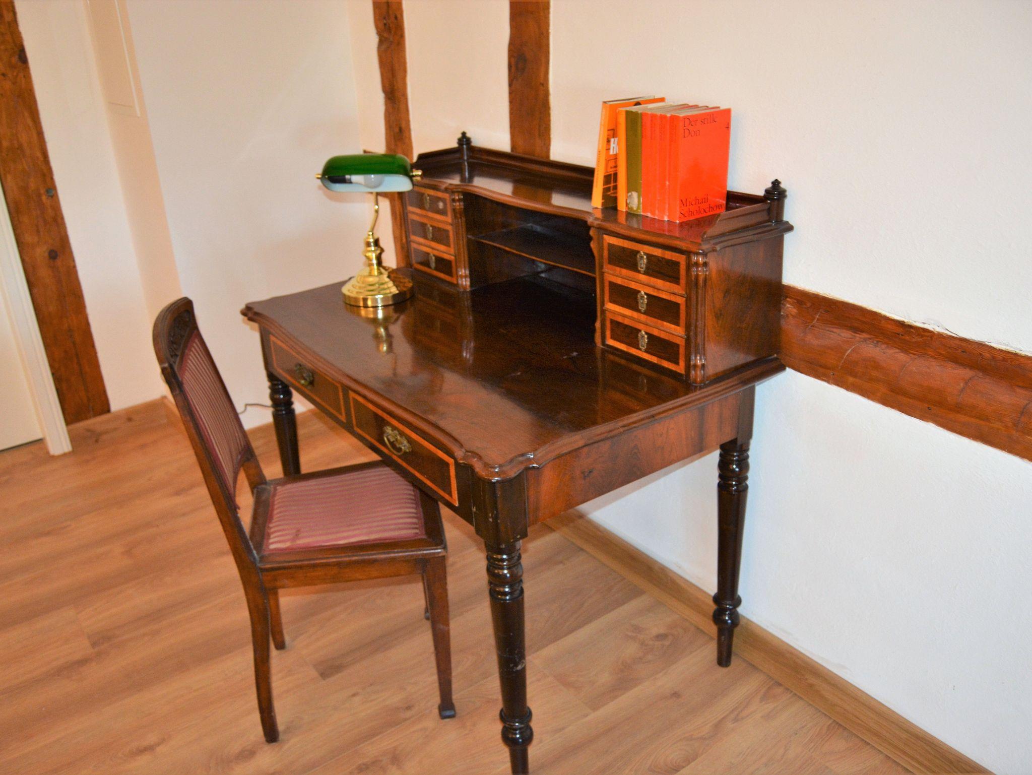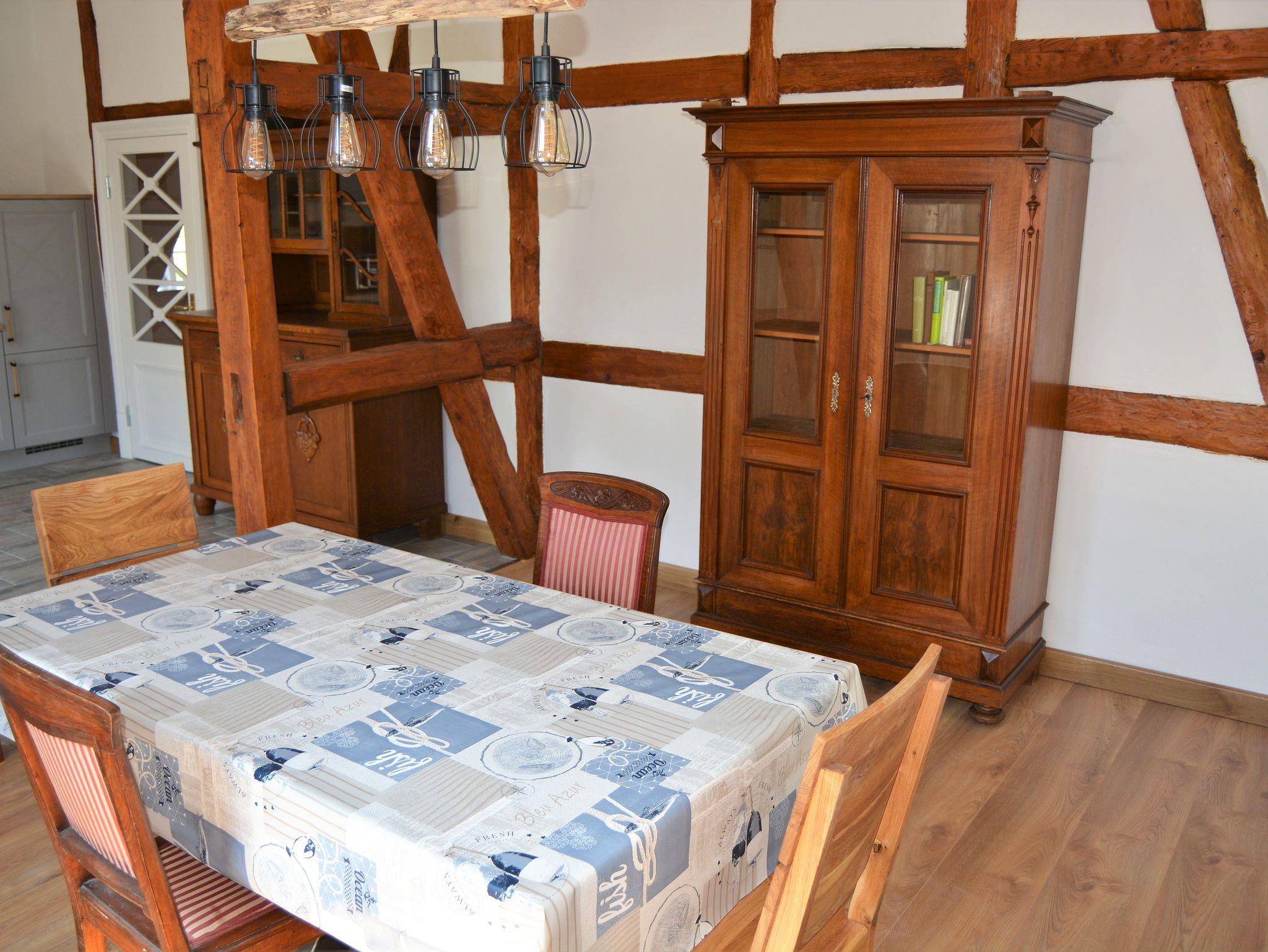Ein Mix aus alten Antiquitäten und modernen Möbeln sorgen für eine angenehme Wohnatmosphäre. In der Küche findet sich alles wichtige: Kühlschrank mit Gefrierfach, Herd und Backofen, Mikrowelle, Kaffeemaschine, Wasser und Eierkocher. Das geräumige Esszimmer bietet viel Platz nicht nur für Mahlzeiten, sondern auch für den gemeinsamen Spieleabend.