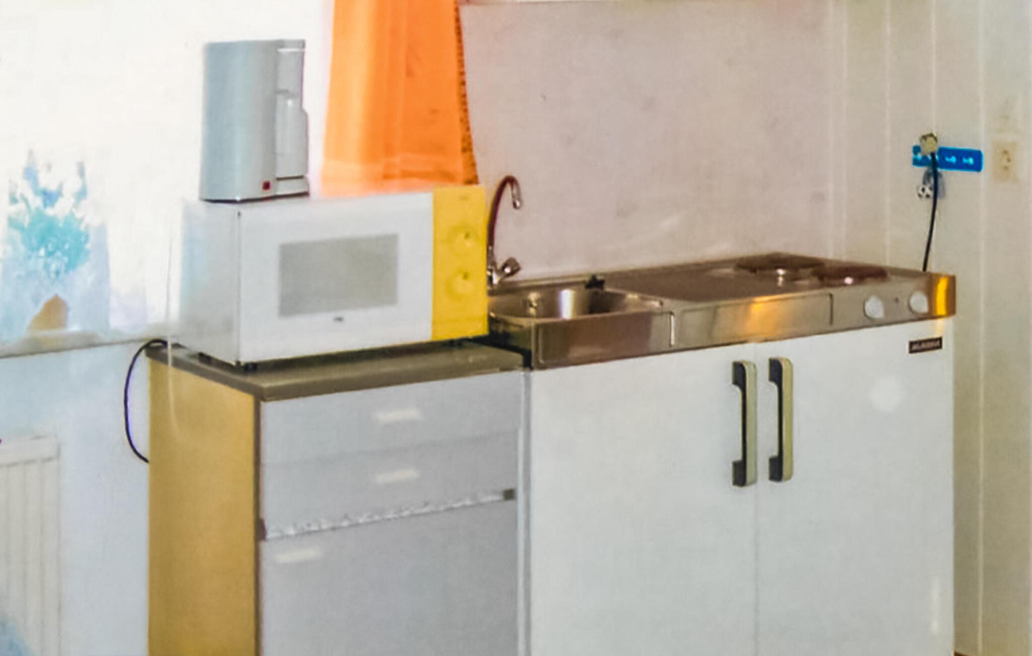 Die Küchenzeile verfügt über heißes Wasser