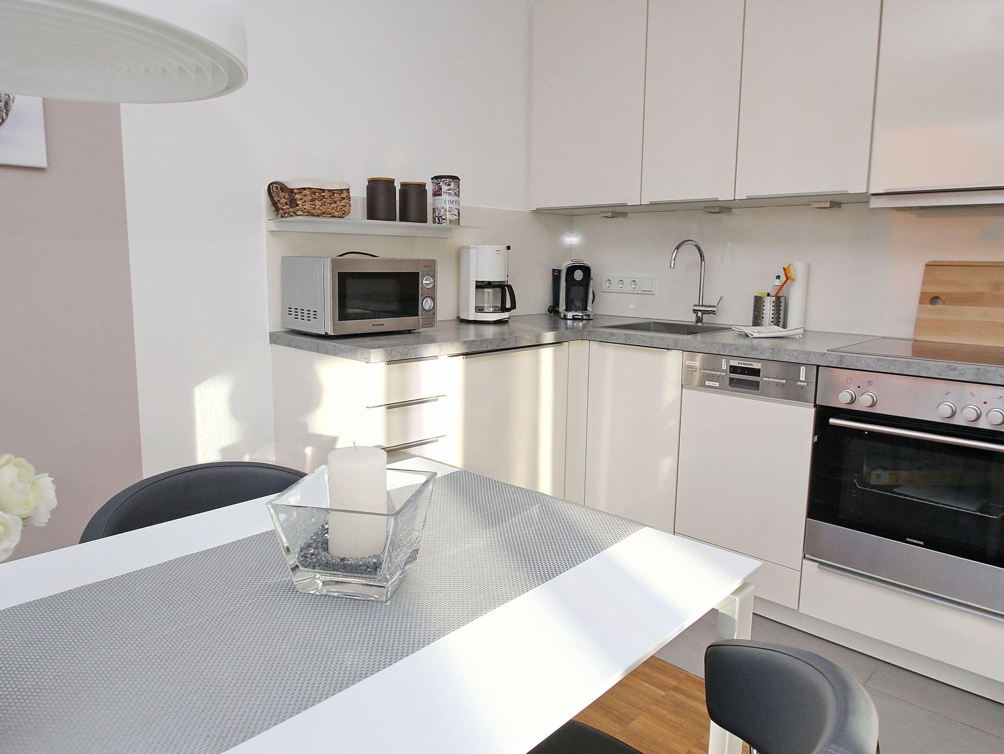 Balkon, Küche, Geschirrspüler, Mikrowelle, Duschbad/WC, Fön, TV, Stereoanlage, W-Lan, Aufzug, Abstellmöglichkeit für Fahrräder, inkl. Außenstellplatz vorm Haus.