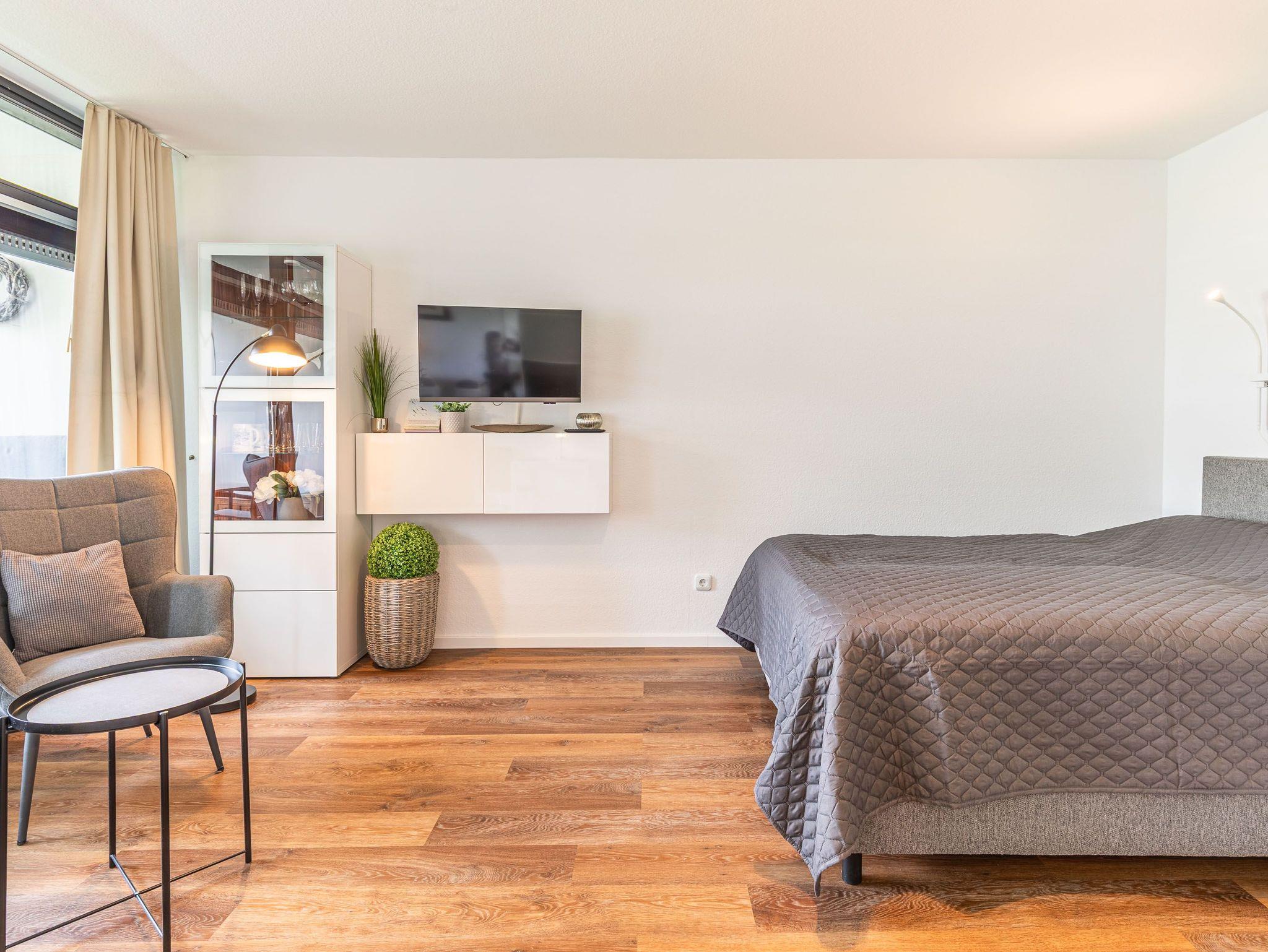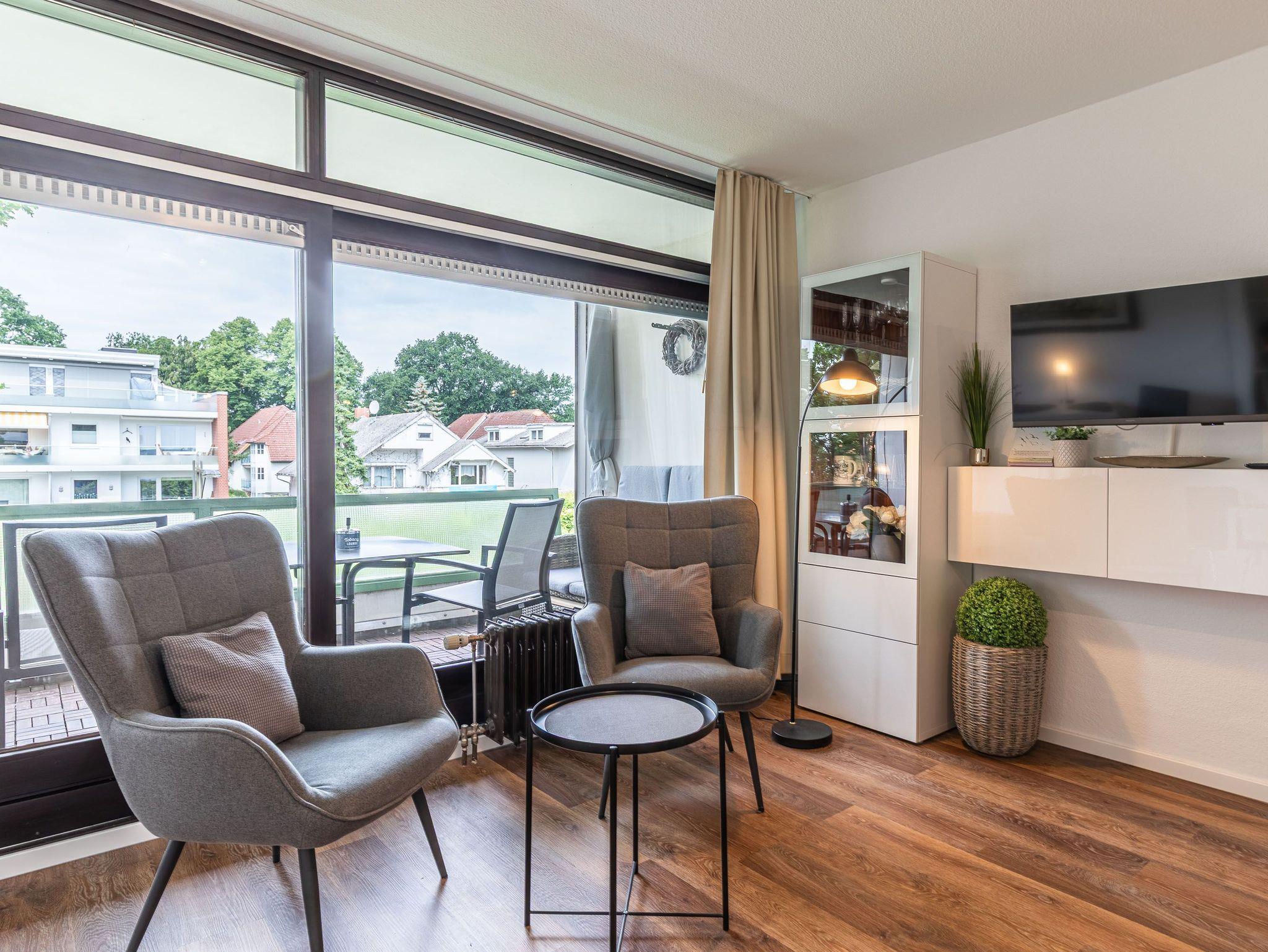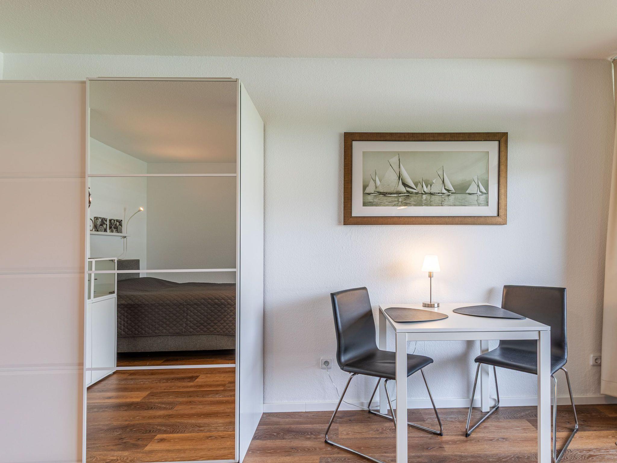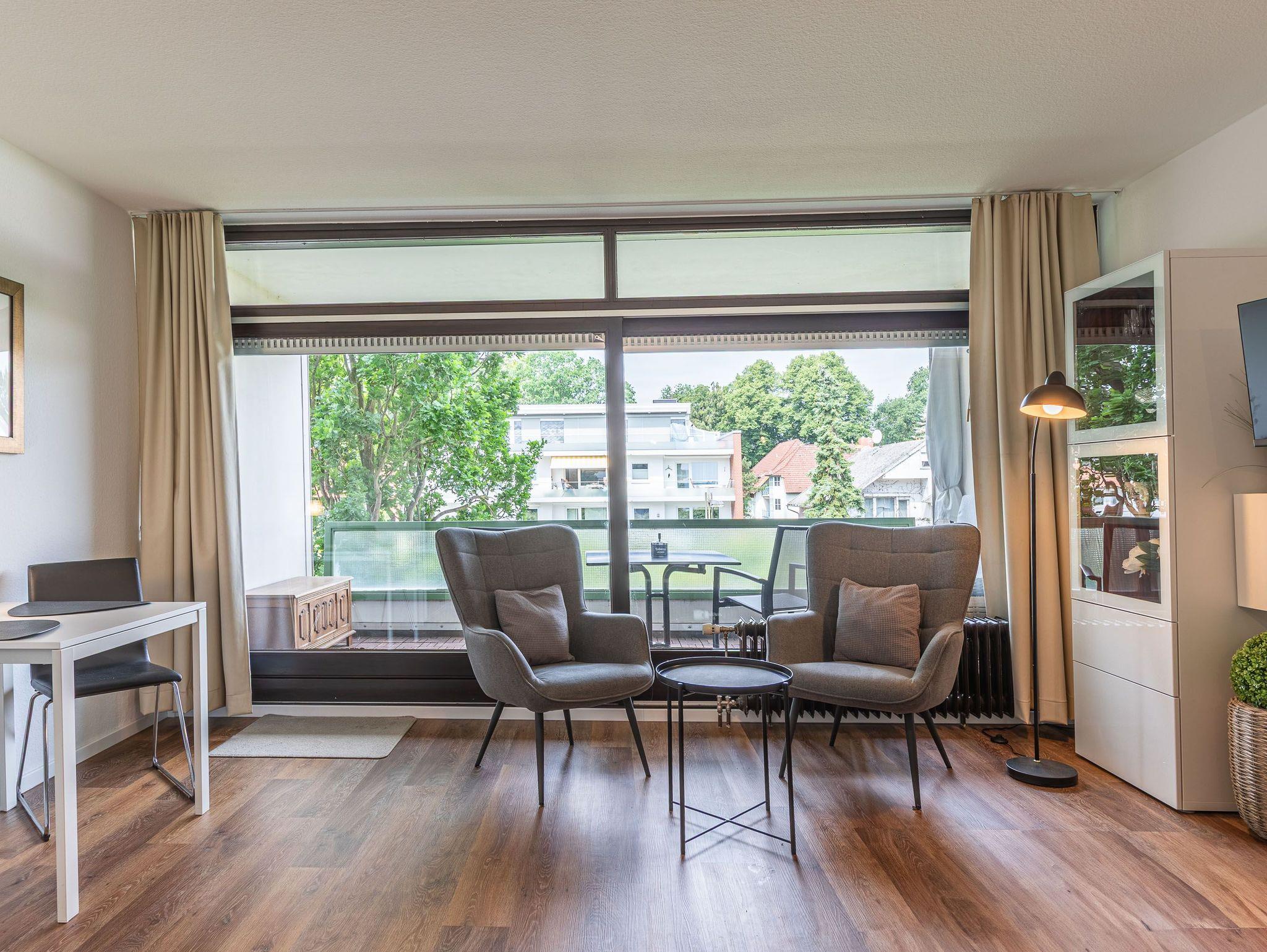 Modernes 1-Zimmer-Appartement mit Westbalkon direkt am Travemünder Strand.