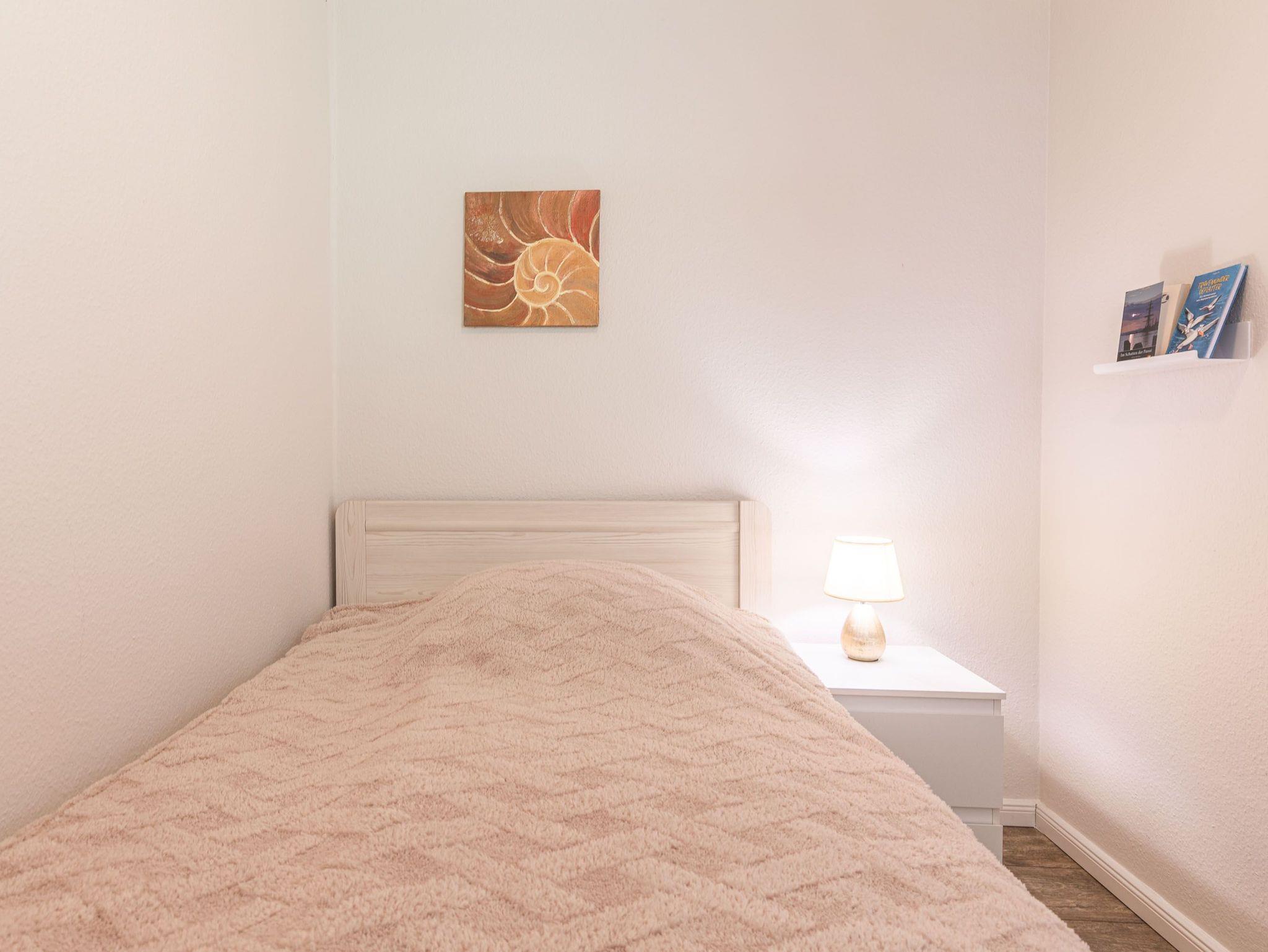 Das Appartement befindet sich in der 2. Etage in einer ruhigen, gepflegten Wohnanlage mit einer großen Sonnenterasse und ist nur wenige Schritte vom Strand entfernt. Es lädt sofort zum Wohlfühlen ein. Im hellen Wohnbereich steht eine gemütliche Eckcouch gegenüber der offenen Küche. In der Wohnraumnische befindet sich ein schönes Doppelbett (160 cm x 200 cm) und ein Kleiderschrank. Im kleinen Schlafzimmer steht ein Einzelbett (120 cm x 200 cm). Abgehend vom Flur erreichen Sie das helle Duschbad und das separate WC. Genießen Sie Ihr Frühstück bei Sonnenschein auf der schönen Terrasse bei herrlicher Umgebung unmittelbar am Strand.