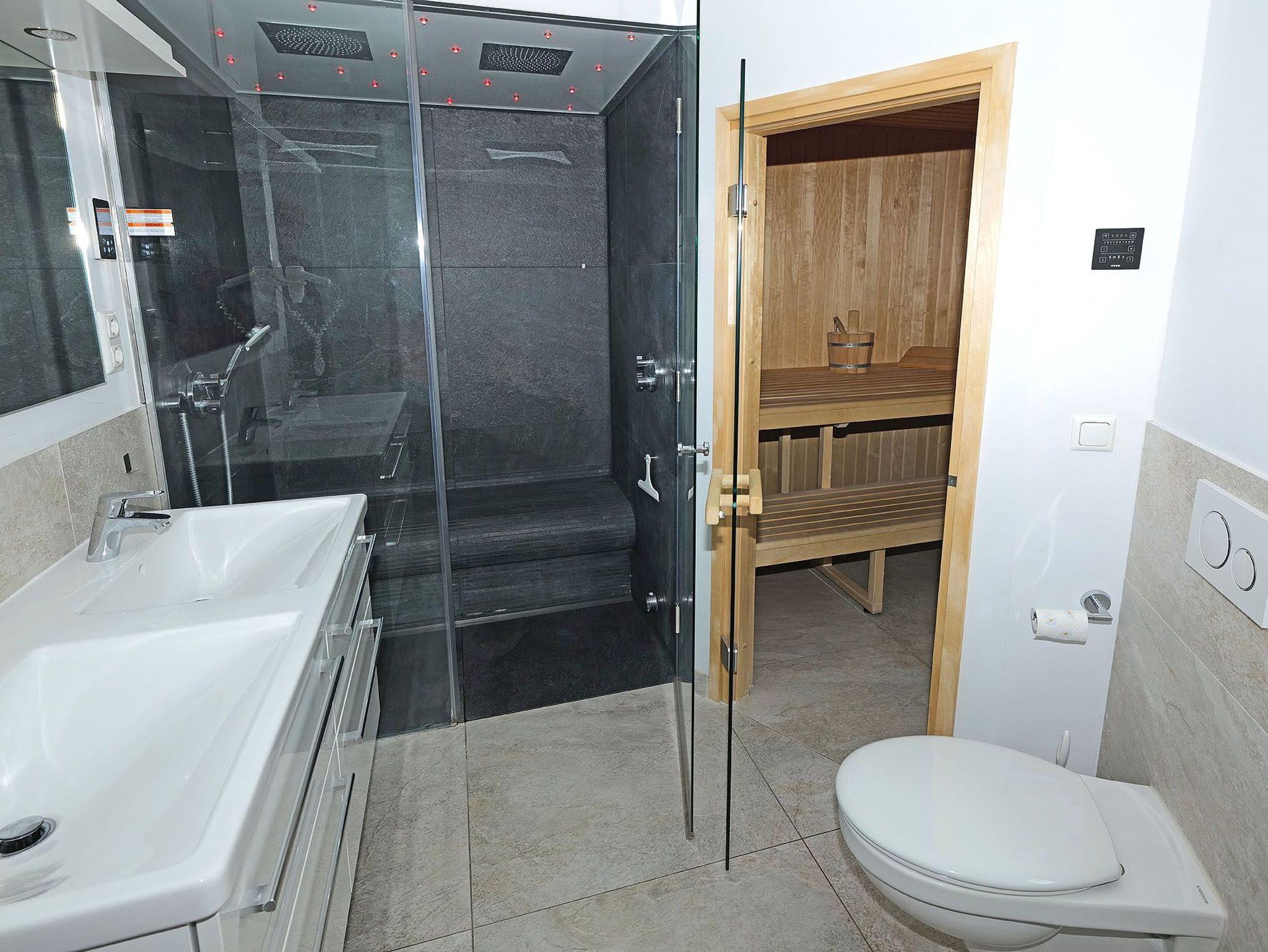 Die Wohnung ist stilvoll, hochwertig und modern eingerichtet. Ein besonderes Highlight ist ihr persönlicher Wellnessbereich mit Sauna, Whirlpool und Dampfbad mit integrierter Doppel-