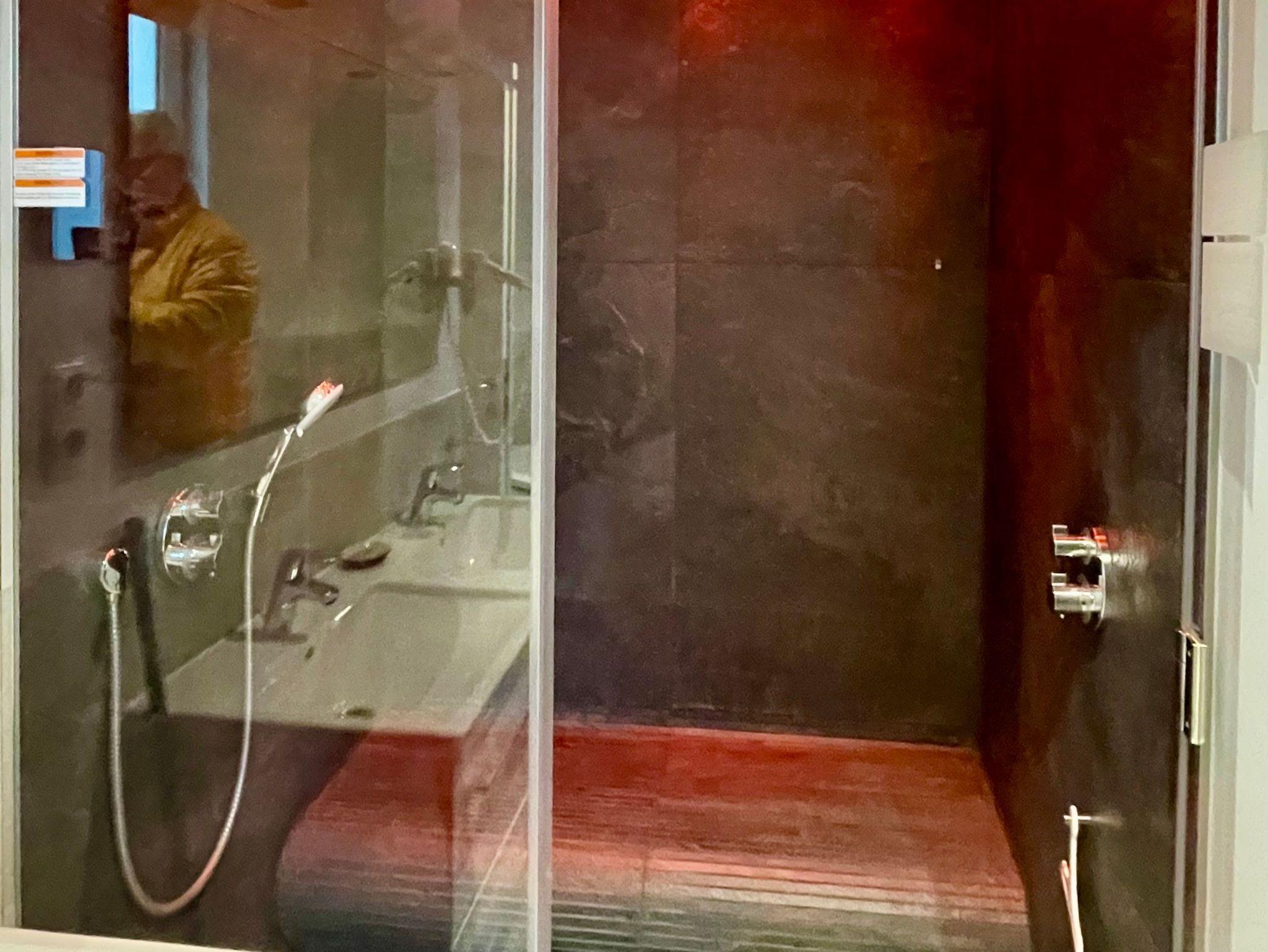 Regendusche. Im Wohnbereich sorgen am Abend die Flammen des Bioethanolkamins für eine gemütliche Atmosphäre, ebenso wie die vorbeifahrenden großen Schiffe mit ihrer eindrucksvollen nächtlichen Beleuchtung.
