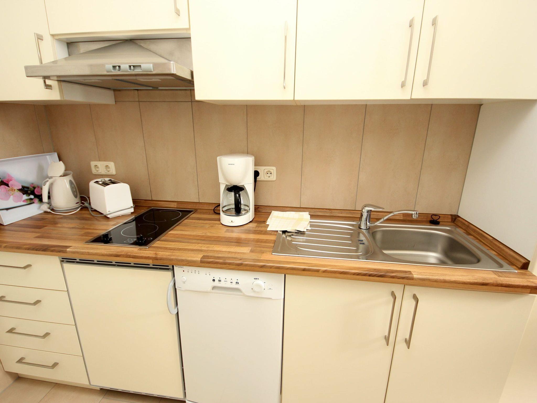 Balkon, Küchenzeile, Geschirrspüler, Mikrowelle, Duschbad/WC, Fön, TV, DVD, Stereoanlage, kostenl. W-Lan, Aufzug, inkl. Tiefgaragenstellplatz (Einfahrtshöhe: 1,85 m).