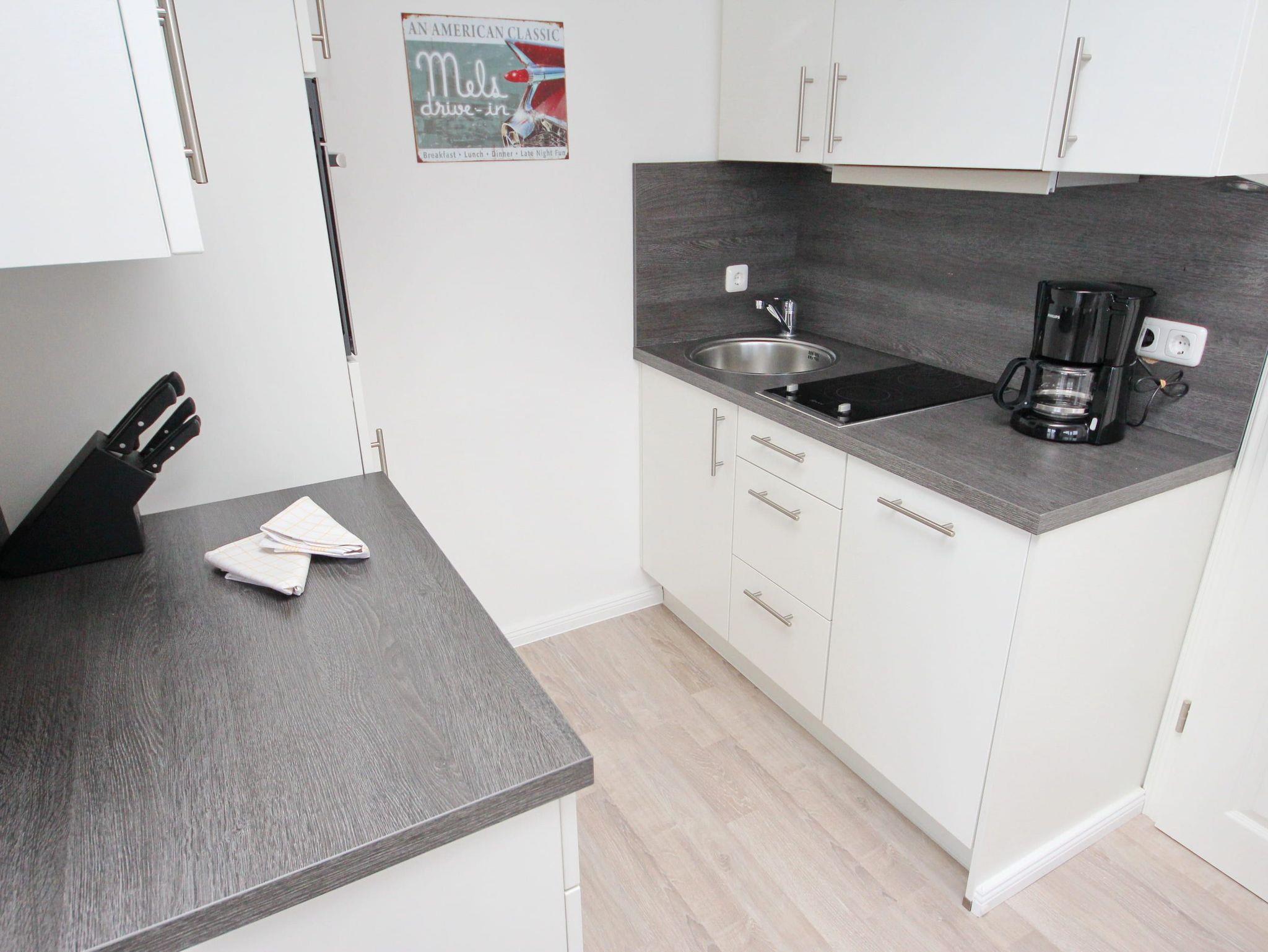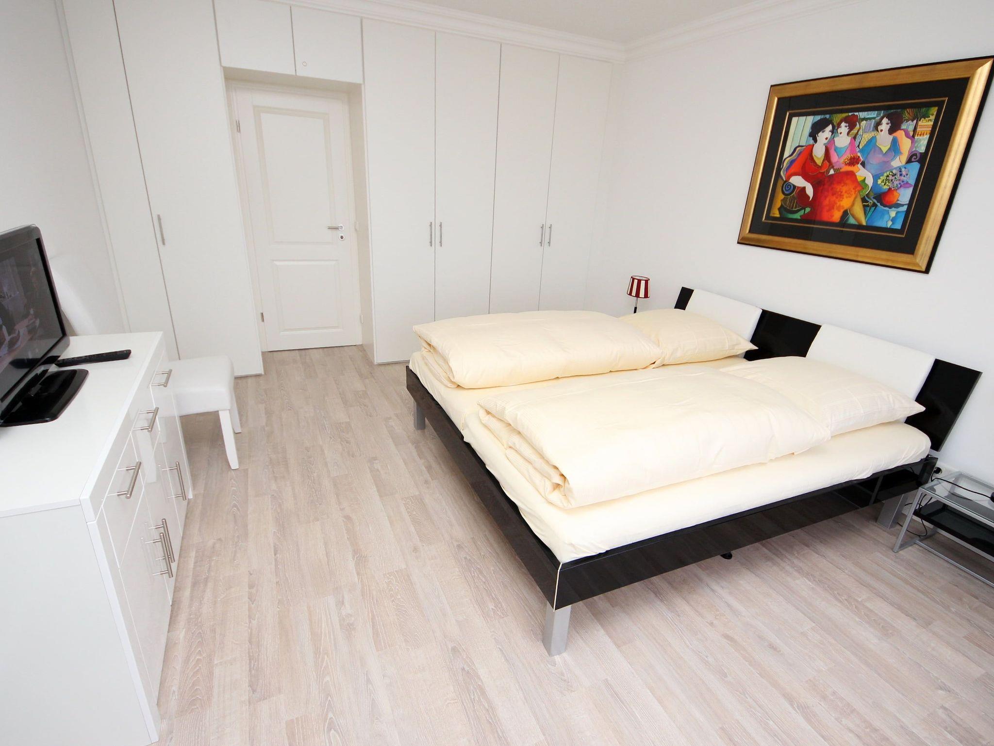 Umlaufende Loggia von ca. 26 m², Küche, Geschirrspüler, Mikrowelle, Duschbad/WC, Fön, 2x TV, Stereoanlage, kostenl. W-Lan, Aufzug, inkl. Tiefgaragenstellplatz (Einfahrtshöhe: 1,85 m).
