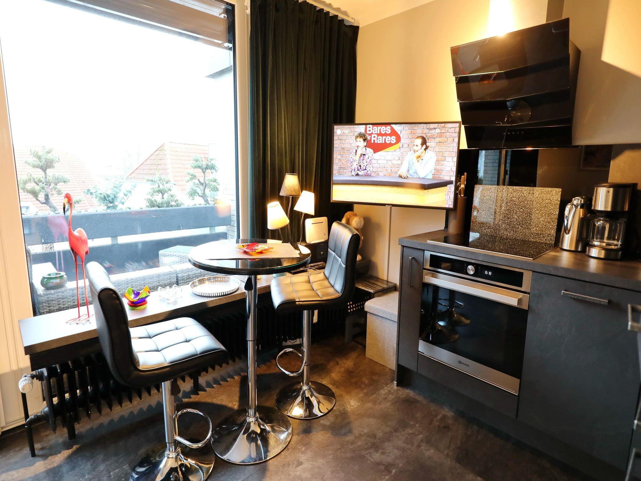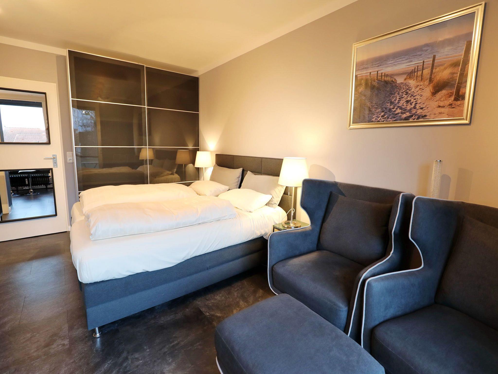 Genießen Sie Urlaub in diesem wunderschönen ruhigen 1-Zimmer-Appartement mit Fahrstuhl und barrierefreie Zugangsmöglichkeit über die Garage am nahegelegenen Godewindpark und Strand. Die Wohneinheit ist hochwertig mit zwei bequemen Sesseln zum Relaxen gerichtet und verfügt über ein elektrisch verstellbares Boxspringbett (1,60m x 2,00m). Die Einbauküche lässt keine Wünsche offen. Auf dem Balkon genießen Sie die Sonne.
