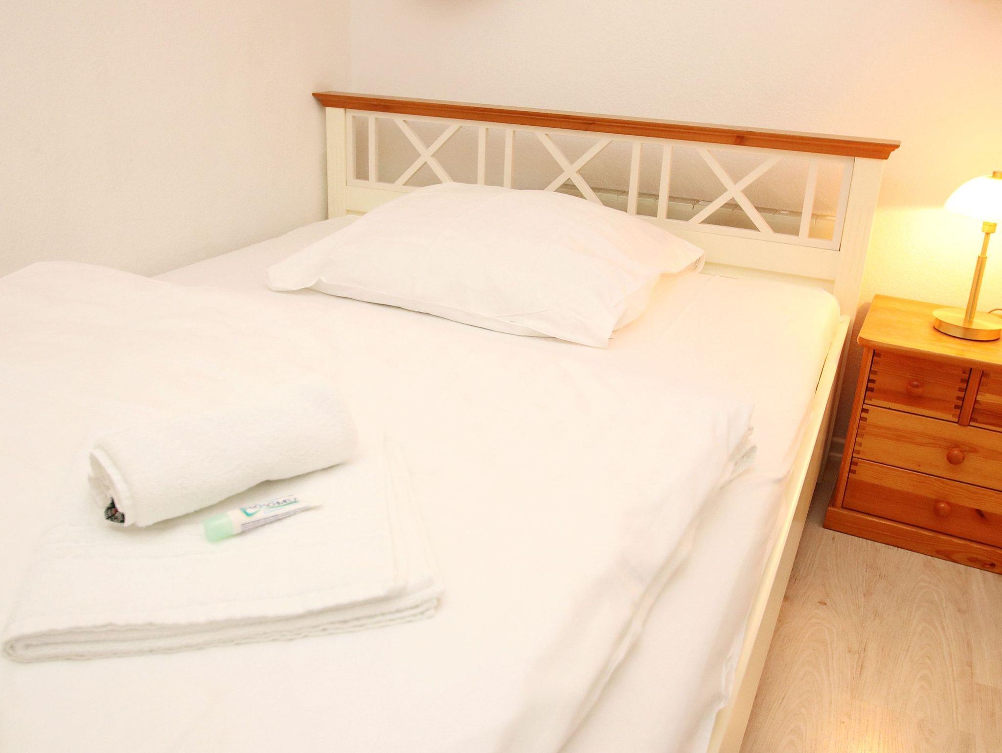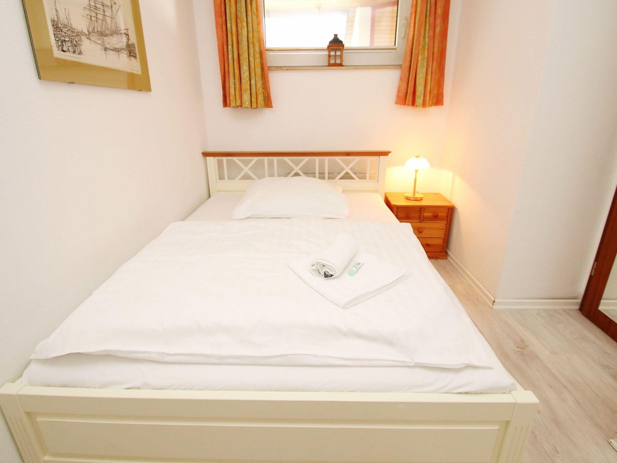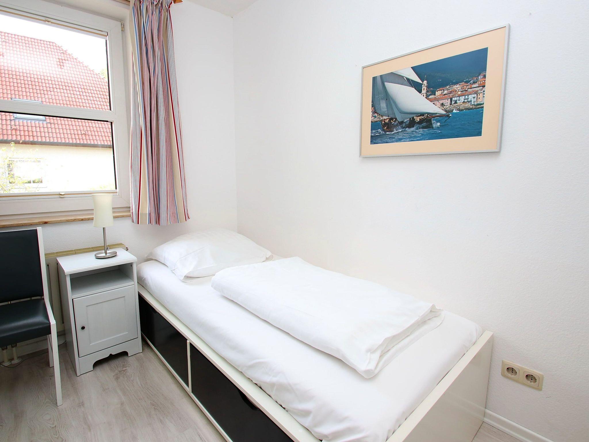 Dieses Appartement besticht mit seiner ruhigen, zentralen und strandnahen Lage in der Kaiserallee. Im Flurbereich, von dem links das Duschbad und rechts das erste Schlafzimmer abgeht, befindet sich ein kleiner und ein etwas größerer Einbauschrank. In dem ersten Schlafzimmer erwartet sie ein bequemes Doppelbett (140 cm x 200 cm) und ein kleiner TV mit DVD-Player. Gerade aus gelangen Sie direkt in den offenen, hellen Wohnbereich, der mit einer gemütlichen dreiteiligen Couchgarnitur, einer Essecke am Fenster und einer modernen Einbauküche ausgestattet ist. Das zweite, vom Wohnbereich abgehende, Schlafzimmer verfügt über ein komfortables Einzelbett (90 cm x 200 cm) und einen Kleiderschrank. Der sonnige Südbalkon lädt zum Verweilen ein.