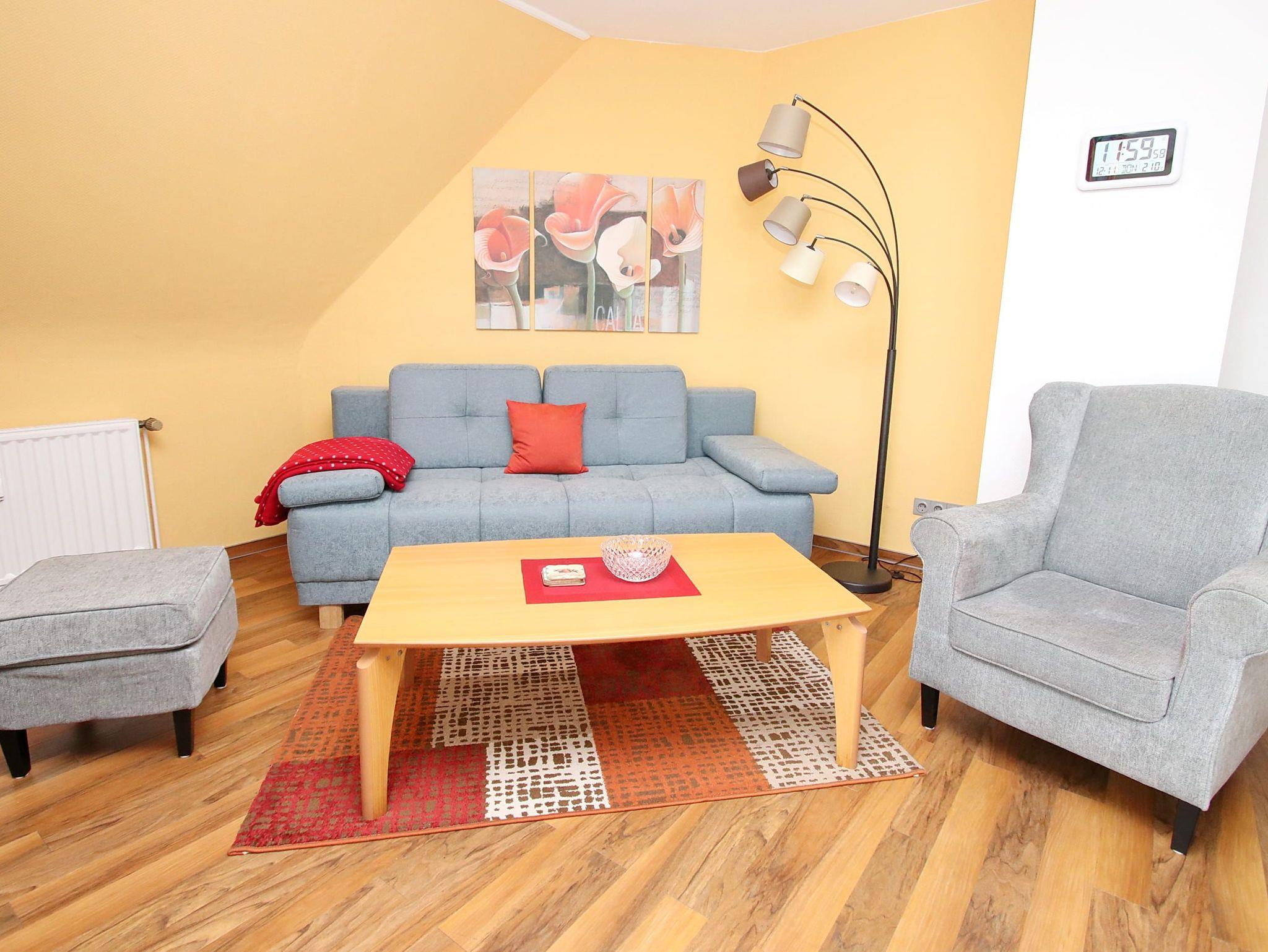 Balkon mit Strandkorb, Küche, Geschirrspüler, Mikrowelle, Duschbad/WC, Fön, 2x TV, DVD, Stereoanlage, kostenl. W-Lan, inkl. Außenstellplatz ca. 300 m vom Haus entfernt.